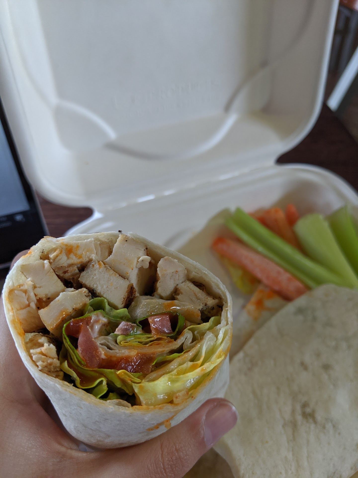 The food is just dandy, but the service is more than lacking. I came during a time they should expect to be busy (during the final Badger basketball game). I understand how the industry works, and that not everything can happen instantaneously, but the wait was due to a lack of effort from the workers, not the system. I showed up at 7:38, and there were about 5 people in front of me and a solo cashier taking orders. The cashier, while he was trying his best, was working slowly, which is fine, but during a busy time it makes sense to have someone experience here. The entire time I was waiting in line there was one orange shirted worker standing in front of the tv and one more there a majority of the time. They were not only blatantly doing nothing (including not opening a second register to slim the line), but they were staring at the tv and cheering with each bucket the Badgers scored. By the time I got finished with my very simple order (a roasted chicken sandwich with vegies on the side, nothing else) the time was 7:56, the food arrived at 8:05; 27 minutes from arrival to departure and a majority of it was spent waiting in a reasonably short line. Moral: don't take a study break to get food from the SETT if you want to be back to studying...