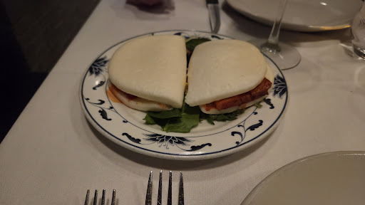 Ok this review is based on a large group (9 people). If you go with a group of 7 or 8 or more they make you get a fixed menu. Dinner was $70 per person plus our group added the optional shrimp dish which added a extra $5 per person. For $75 a person we could have have a much better meal elsewhere. Included in their fixed menu was an appetizer sampler. There was one dumpling, one piece of a spring roll (yes they were cut in pieces), one wonton, some small cooked peppers and a salad. Then they brought out a wrap with duck in it. Then dinner was the extra cost shrimp dish (very small I was last to get it and got 1 shrimp), a mixed meat dish (beef, pork and chicken), a platter of roasted chicken with some broccoli and a dish of salmon. Dessert was a sampler platter. A tiny spoon of ice cream, one per person. 2 small slices of cheese cake, a piece of Tiramisu and 1 tiny lava cake (keep in mind we were 9 people, I think 5 of us got a teaspoon taste of it) Where do I start, the entire meal was cold, including the appetizers. The only hot thing we were served was the tiny lave cake. The salmon and chicken were dried out (& cold) like it had been cooked hours before and was waiting for us. They were the only things that were served an ample amount and they were so unappetizing we barely ate them. Everyone said the mixed dish of beef, pork and chicken was tasty but there was not enough to go around. The waitress did do a good job and served us promptly and pleasantly. My group didn't want to complain about the food as she was working so hard which I thought was a mistake. At least they could have tried to fix the errors but everyone was concerned they would have just heated up the food which would have made it worse. Oh and we were seated in the raised room at the back of the restaurant and there was no heat! It was literally freezing. Most of our group wore their coats. There is a fireplace in that room but it offers no heat. The jazz band was fine but only plays for about an hour and they are LOUD. So, maybe if you go with a smaller group or a couple your experience may be different but I would definitely NOT recommend going with a large group. Seatings are only offered at 6:15 or 8:30. 6;15 was booked and we went for the 8:30 (reservation made a week ahead). We were seated until after 9:00. The check in was chaotic at best. First seating leaving, second coming people standing at the bar and in the doorways. Long story short, I will not...