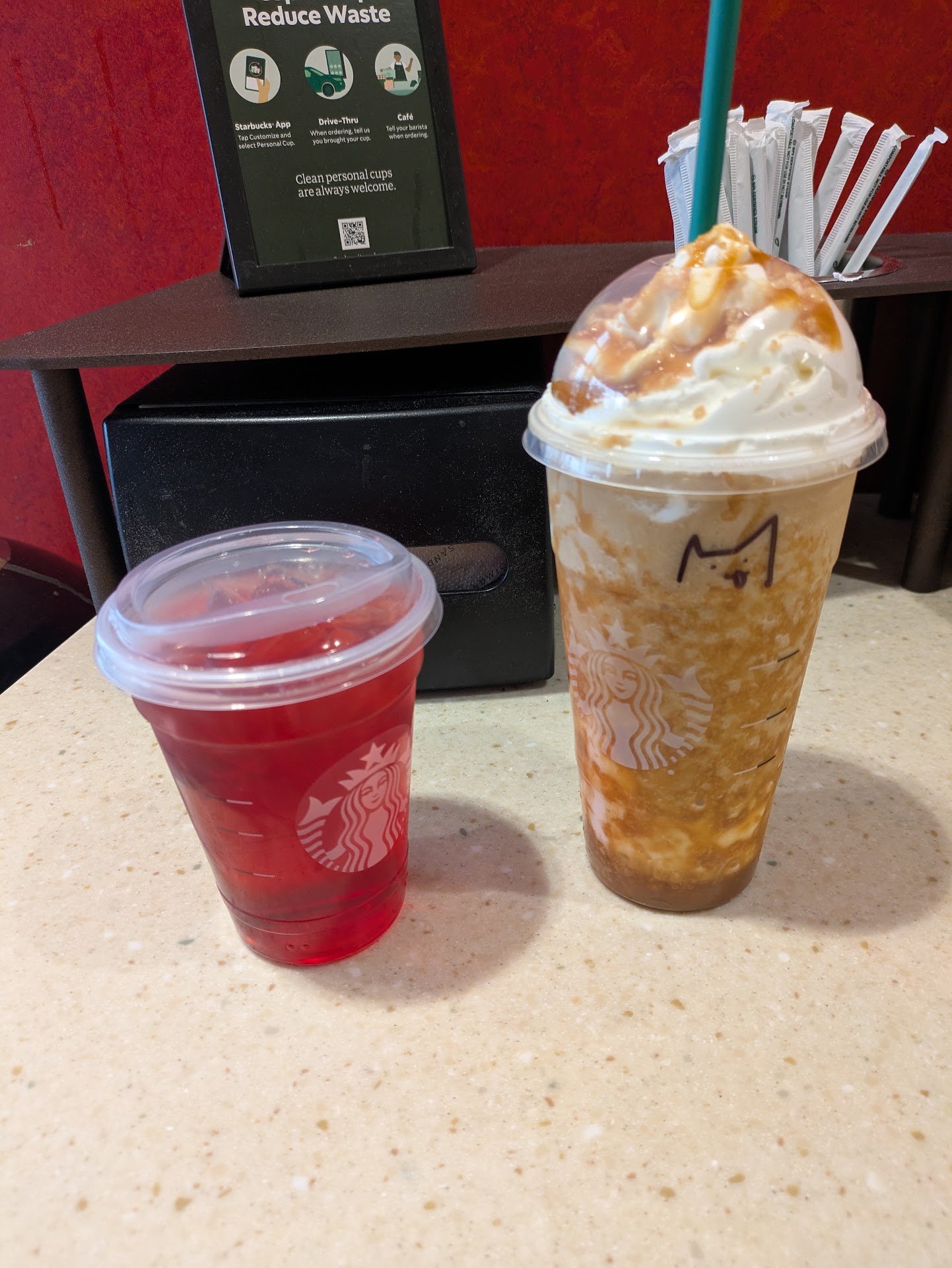 Ā Ā Ā Read moreThis place has got to be the most overrated brand ever. The wait time is so bad always, and I understand you always have customers, but we can straight up see people who arenāt working. Along with this, the prices are so so over what the norm could be. There are so many local coffee shops that do not get nearly the attention this overpriced place does. Their drinks donāt even taste the same each time. Last time, I got the cookie crumble and it was literally shaved ice with whipped cream. No sweetness. To top the cherry, they support a country that I cannot agree with. If youāre going to do all of this, at least be discreet. No hate Starbucks, but you could definitely benefit with some lower...