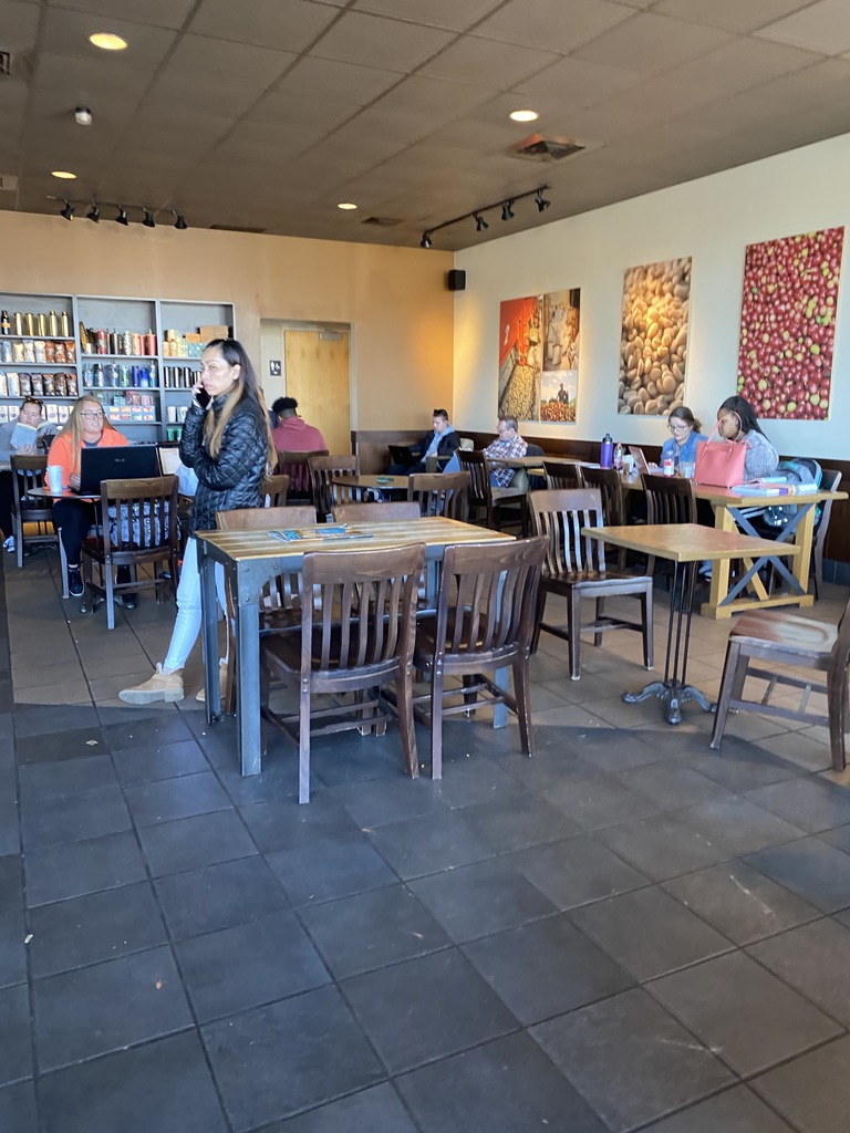 Starbucks is very popular as a meeting place for college students and business associates are has a quiet atmosphere. Starbucks make sumo the best coffee, latte's and mocha so we enjoy treating ourselves occasionally. Occasionally as it is an expensive caffeinated beverage but they aero consistent with the recipes. The staff is always friendly and professional.