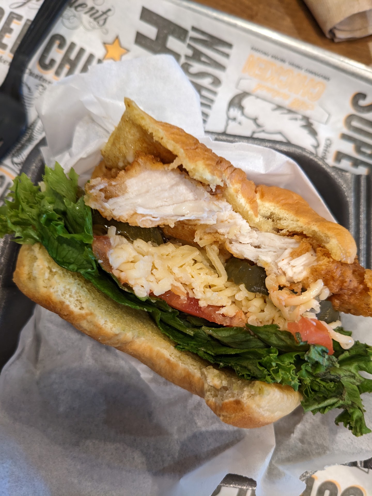 Great expecations, underwhelmingly delivery. The deluxe chicken sandwich had good flavor, but it had a small piece of chicken breast that was lost inside the bun. Loved the soft bun and sauce, but a slight overpay at $8 for just a sandwich that had a smaller piece of meat. The cheese fries were decent, but nothing to write home about. I had high expectations when I saw they used queso blanco, but came out as meh and quickly solidfied into solids. I'd recommend just going with the plain fries and hit the sauce bar. I do like the array of sauce options, but outside of the signature sauce (really good) the others were very runny and not the best for dipping. I also tried the tenders because someone in our group didn't want to finish them. I instantly saw why. The tenders were grease soaked and not in a salvageable way. Our friend literally grabbed them with a napkin and squeezed the grease out like a wet shirt which ran onto the tray. The grease that was soaked into the tender breading looked dark, smelled bad and upon inspection we saw that the darkness was from lots of burnt, black specs of breading floating in the oil which got over and into everything. Taking into account the whole experience of undersized portions, misses on flavor/preparation and the fact you have to buy every item individually without a combo option, I'd say you're better off going to the vast amount of other chicken shops within the local area. The meal total came to $38 for two people (2 sandwiches, 2 fries (1 loaded), and 2 fountain drinks). Much better value elsewhere and I will likely not be coming back because there are far too many other options that are much better (flavor and...