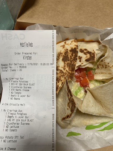Read moreEarlier today (almost 2 hours prior to arriving at this location) I placed an online order for dinner for our family. I have a special needs child and I wasn't feeling well and asked my bf to go grab the order. He gave them my last name and the employee claimed they never received an order with that name. I called the establishment to inquire what happened. Upon greeting the employee and explaining to her that my significant other came through the drive through and was confused as to what happened, their response was "we don't have any order"...No inquiry as to how or why I would be calling or anything about how there might have been a mix up, NO instead she blatantly just refused to having an order. I informed her that my card had been charged and the location listed matched the one he was located at. Only after that did she ask for my name, only to tell me he got the name wrong (I have been with this man for 4 years, don't blame him because you can't read the order). After he had to return to the drive thru line and wait, and finally got home we realized they left off part of the order and ALL of the items were put together very poorly. Almost no filling in any of the items. We spent $44 to feed our family and have leftovers, I might as well have feed everyone a few scraps of cheese on a tortilla. I understand that everyone has a lot on their plate because of the current pandemic but this was just unacceptable. There's no reason to be rude to a paying customer inquiring about their purchases and absolutely disrespectful to then purposefully make said order in the most piss poor manner imaginable. They will not receive my business again, I've eaten at numerous taco bells over the years and never recieved such an awful experience. It honestly makes me question whether or not I want to give the...