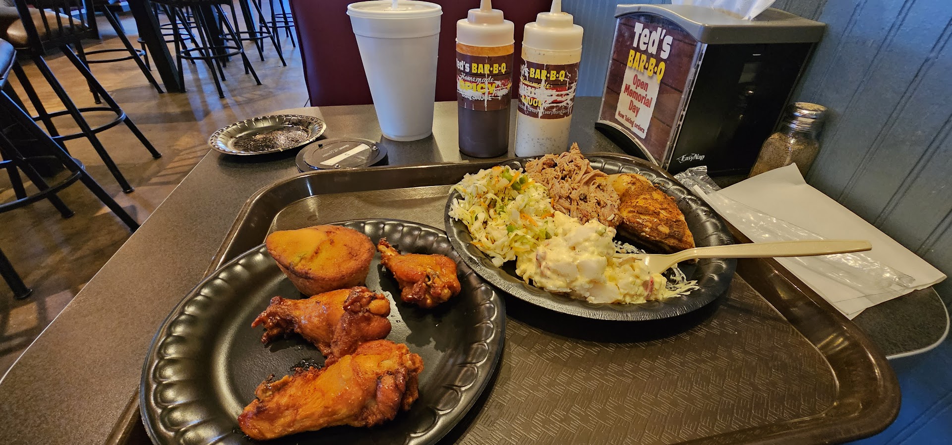 Read moreThis was our first visit to a Ted's Bar-B-Q and I'm not sure we'll be back. My wife and I were visiting the Huntsville area to help our daughter move and stopped there for lunch between activities. We found the service rather unfriendly, both the cashier and the other staff we encountered. No smiles or friendly nods, the casher rather business-like; the server who brought the food out rather gruff when I asked her a question; and another just pointed when I asked where the BBQ sauce could be found, like maybe I was stupid for asking (it was near the window where the food is brought out, but around the corner so not readily visible). My wife said her pulled pork sandwich was very good. I had the chicken and can only say it was okay. It was a little dry, so I doused it with plenty of sauce. My daughter says it's a good place to eat, so perhaps we just caught them on an off day. But they didn't leave us with a...