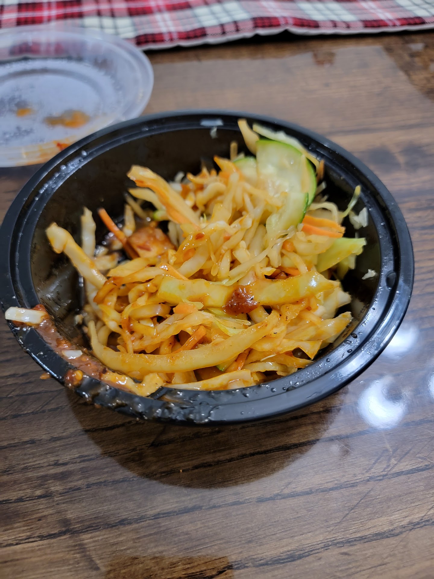 Read moreThe food here is brilliant, so you must be wondering why I've chosen to leave one star. For the price you pay, the portions are ridiculously small. Having looked through reviews over the years, I notice the portion sizes (thanks for the pics, reviewers!) have become smaller and smaller each year. I ordered a large Spicy Chicken Bowl with fried rice two weeks ago (the container is huge), and when I put my fork into the rice, it touched the bottom of the container almost immediately! I tried again another day, just in case it was just an off day for them, and it was the same thing. What a disappointment. Each and every response to a review from the restaurant's owner here is generic, and suggests they will improve on the complaints to ensure they retain business. Seems that has not been done because I see similar complaints from over a year ago. I'm broken because the food is really really good, but it just isn't worth the money you pay. Also, it would help for your workers to say hello when customers approach with an order (a smile helps too.) Do better, folks. I wish to return, but I know I'll be wasting my hard-earned money.