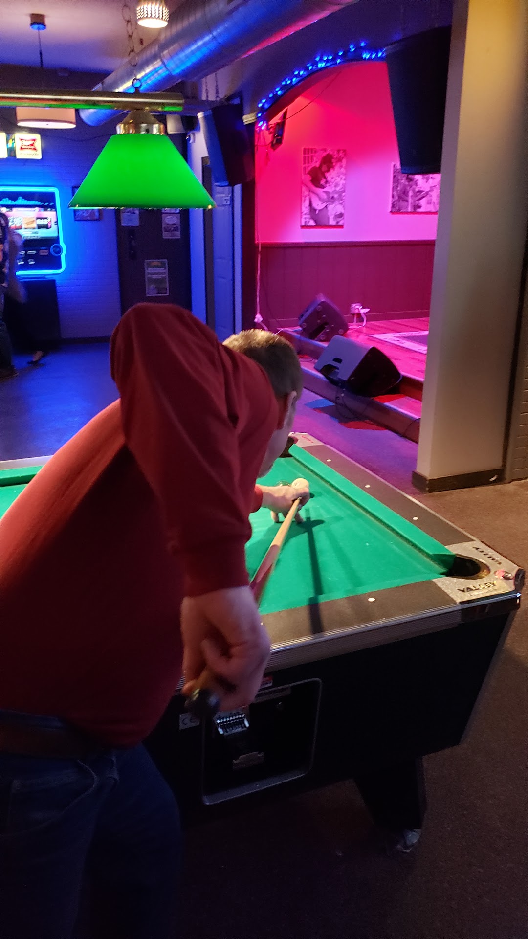 They have two pool tables and a spot for live music. The spot for music is pretty small and can tightly fit a band of 7 and equipment. The area to stand and watch the music is small as well.