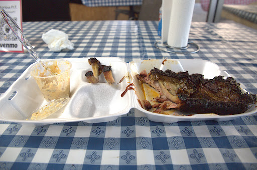 I don't even have words to describe this place. No inside sitting, the food was way overpriced. I ordered a full rack of ribs and it took two hands to tear it apart. I asked to use the bathroom and some kid who works there said that he would have to ask for me to use it. I mentioned i needed to just wash my hands, the kid was nice enough to let me in the back where the food was to wash them. I saw the sides sitting in the back with flies around it. I am not sure how this place got any good reviews, but i hardly ever write reviews about a bad experience or good one but this one was hard not to. The only nice thing i have to say was the people were friendly for the most part. I didn't try anything except the ribs, but i think I'm good. Also i would recommend that you take card not just cash app or cash. Not everyone uses...
