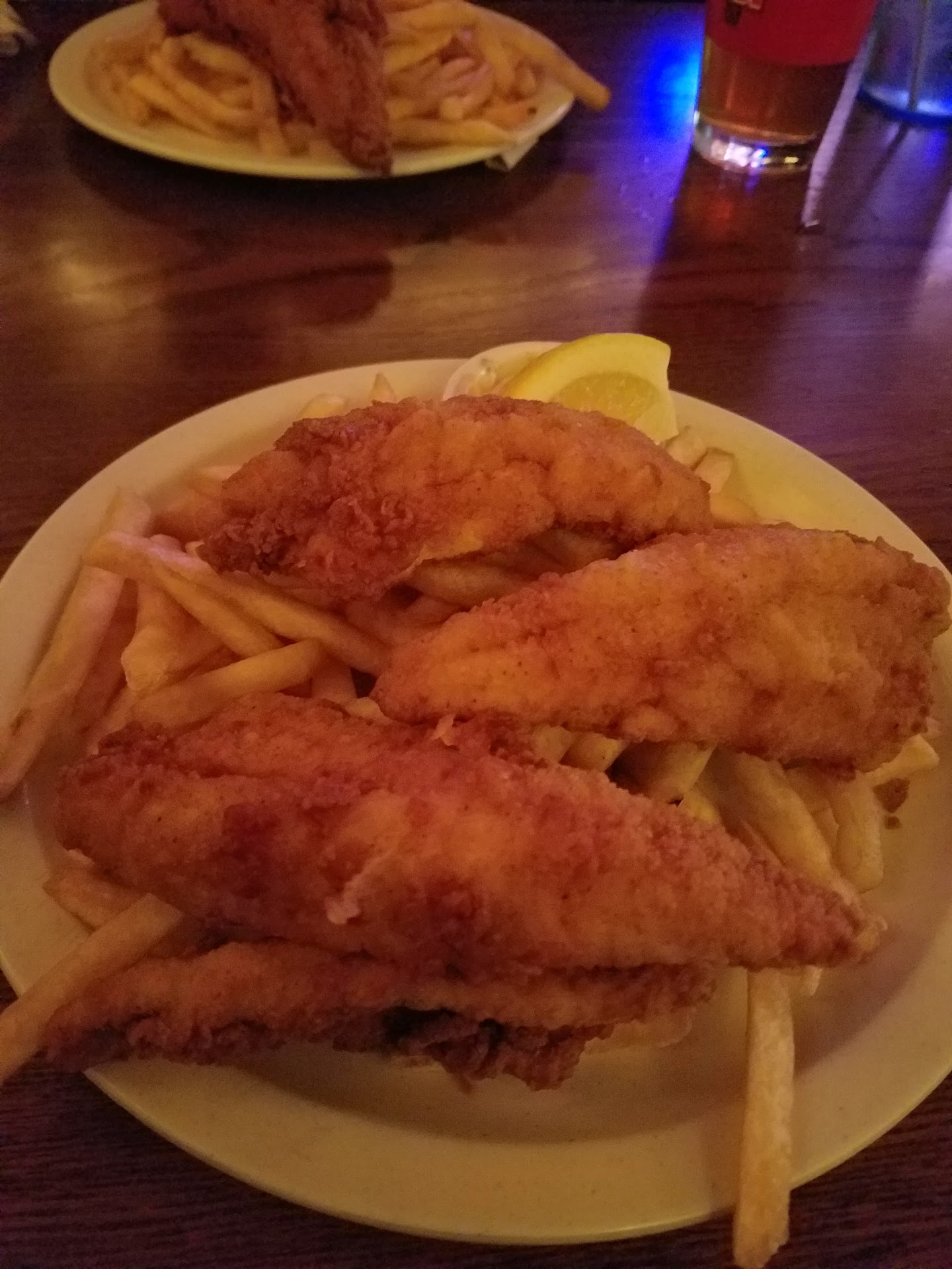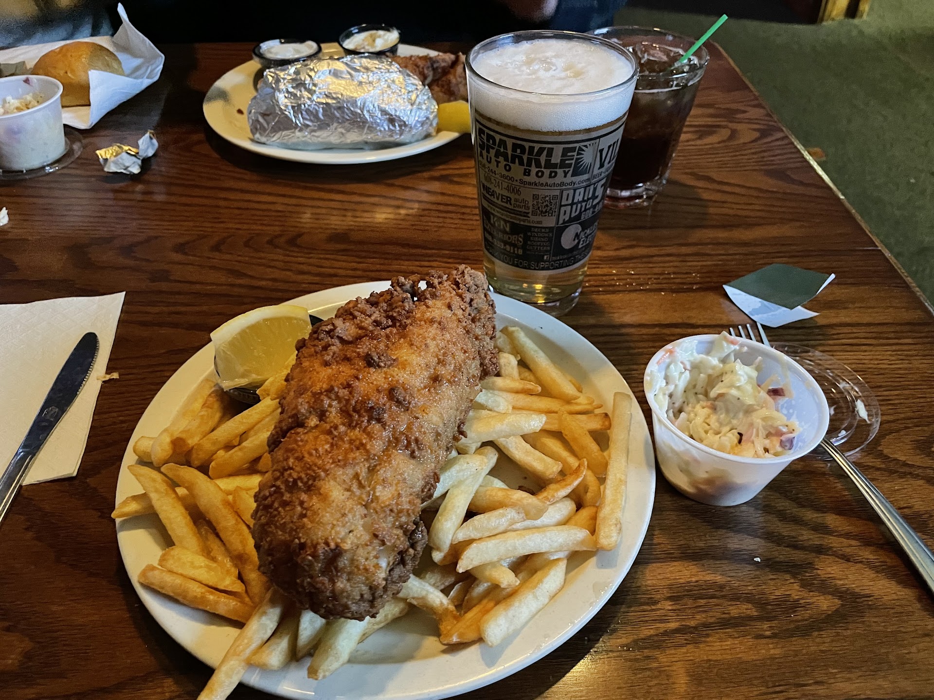 Friday night fish fry is the busiest time with wait times to sit sometimes up to an hour, and then more to get food. It's 100% worth the wait when you get the fish though. Bun, coleslaw, and potato all come with it so come hungry. You can also choose cod, bluegill, walleye, and shrimp.