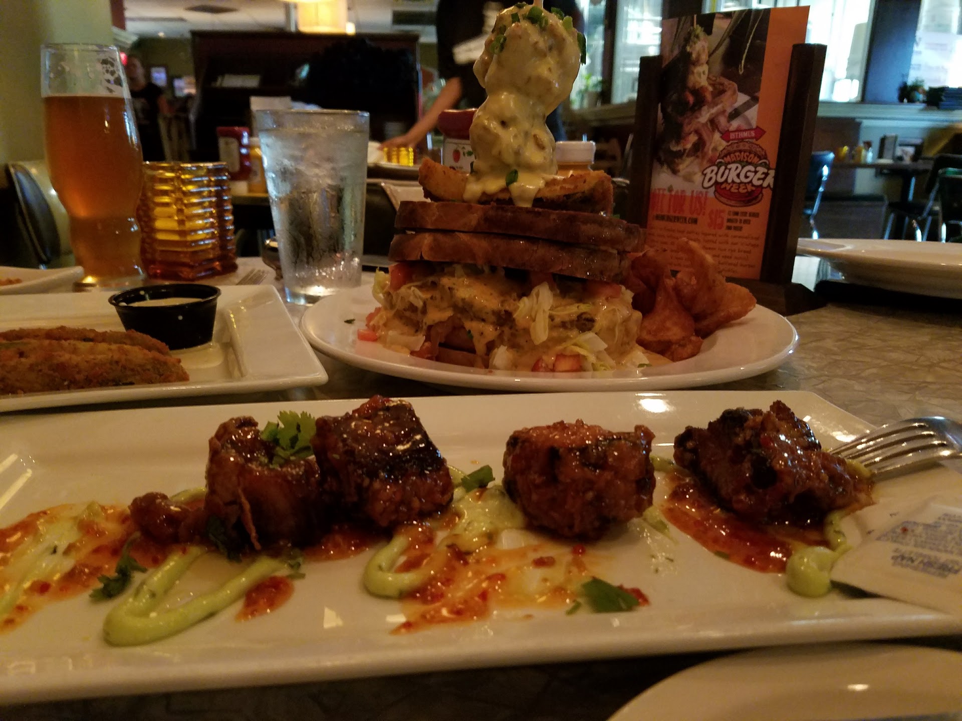 Follow up from Madison Burger Week 2017... The good, the bad, and the ugly. That's how I felt after leaving here last night. I went here with a friend to split the burger week special burger. We started with fried pickles and pork belly. The shining star of the night was definitely the pork belly, deep fried crispy on the outside and tender and juicy in the inside, covered with a very tasty glaze and sauces decorating the plate. Very appealing to the eye and the stomach. Then it went down hill... the breading on the Pickle Spears was falling off. So much in fact that they pulled 2 off the plate and replaced shortly after with 2 over-battered ones. Then the dinner burger came a few minutes after the starters arrived. Timing at this place wasn't on par yesterday. The special burger, well it's special alright. It starts with a grilled marble rye muenstr cheese, topped with 2 1/4 lb beef patties, topped with cheese, and lettuce, tomato, special sauce, the another grilled Swiss on marble rye, followed with twin fried pickles Spears, and 2 deep fried burger balls covered in cheese sauce. The cheese sauce was definitely not good, it was gritty, and I bet they used a packaged shredded cheese instead of from a block and shredding themselves. The burger overall was a mess of flavors that didn't work well. Probably not...