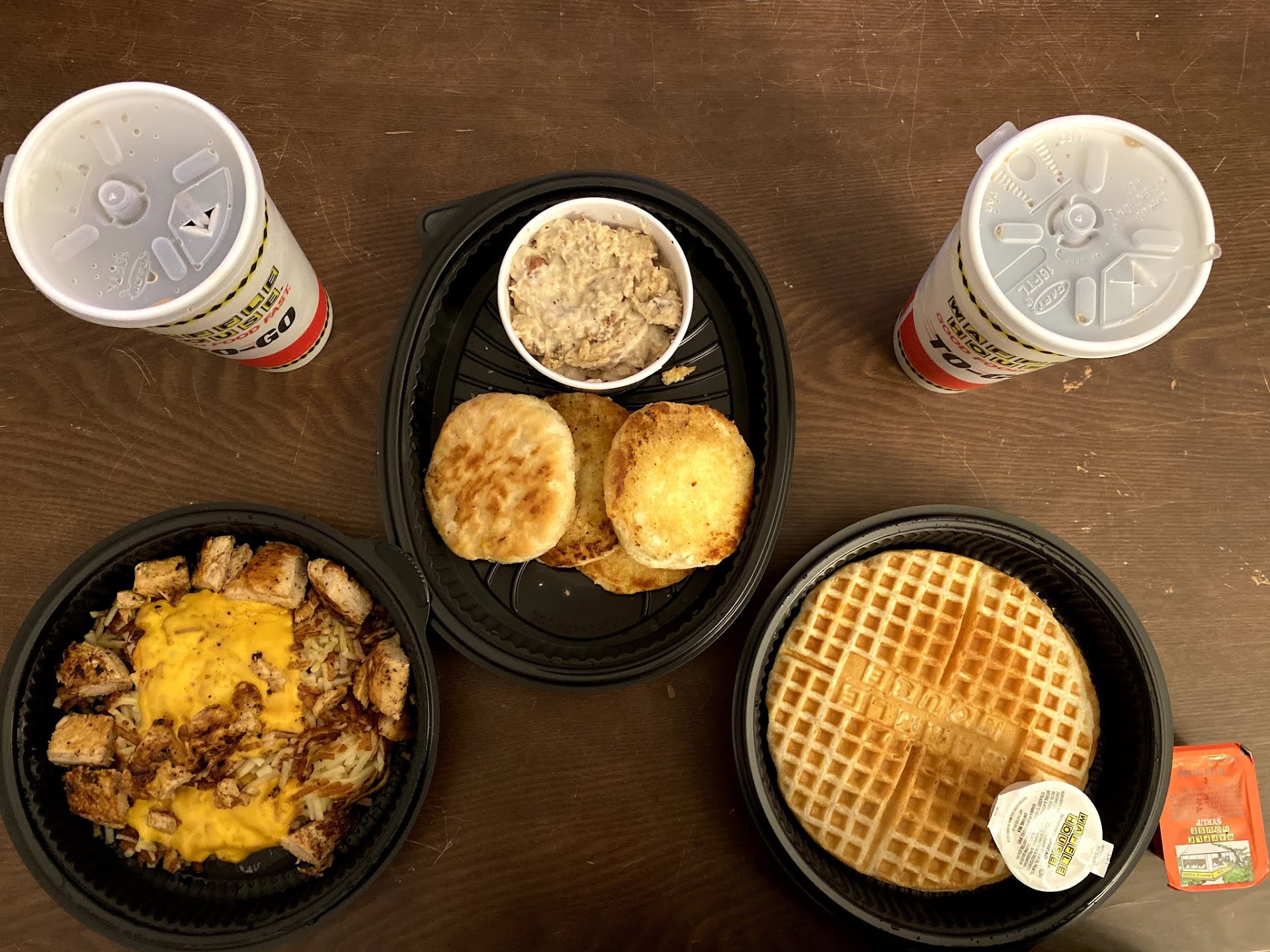 Read moreI went in to or a to go meal after working 12 hours and there was a guy stand at the cash register with the cook trying to read a recipe or something for 2 or 3 minutes then the guy left so I was looking at a menu at the cash register for about 5 minutes or so and the waitress kept saying she would be right with me I’m looking around and the waffle irons looked as if they haven’t been cleaned in a week and I see what looks to me like to go plates and I’m just looking back and forth between the menu and the restaurant and finally the waitress comes to me with a few people already behind me at this point and said you get a to go order I replied yes then she said that they didn’t have any to go plates so I left and as I was leaving two or three more people was coming in the door so I wait in my car a few minutes to see if anybody else was going to walk out after me they don’t but I did see a guy sitting in the to go chairs and he was the last person that came in he so I assumed he got his to go order because the last person that went in had already had sat down in a stool or eat in chair I think Waffle House should roll back their cameras to see if he got a to go order if not that start ordering the things they need for to go orders I bet if I ordered and over paid door dash I would’ve gotten it...
