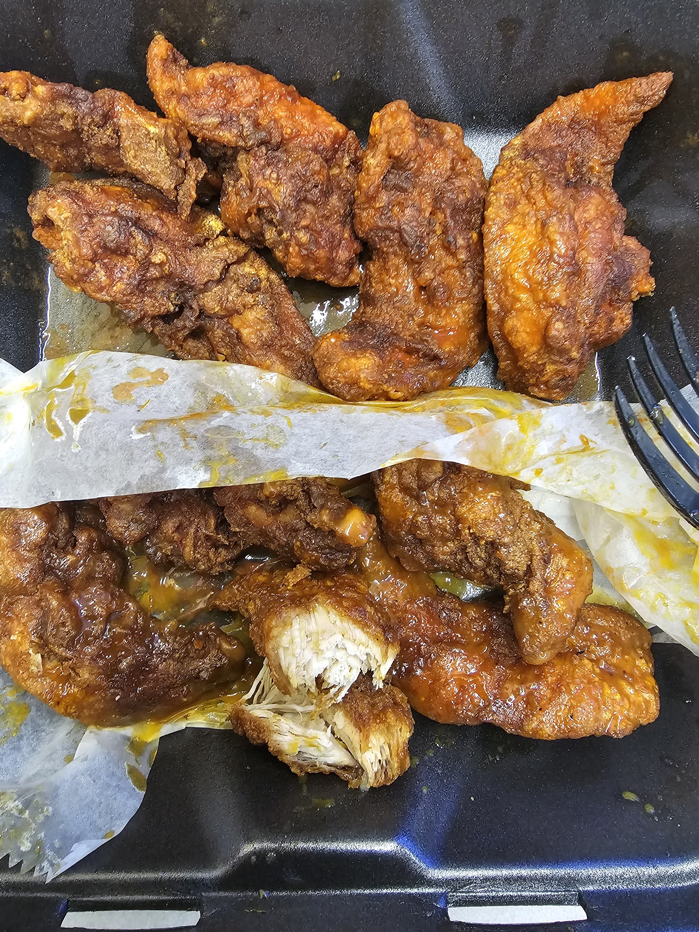 I dont like throwing food away. Usually I'll eat my take over left overs all week. But the wings were just too gross. It's a waste of what was budgeted to be enjoyable to eat for the remainder of the week. At least I know I dont want to order...