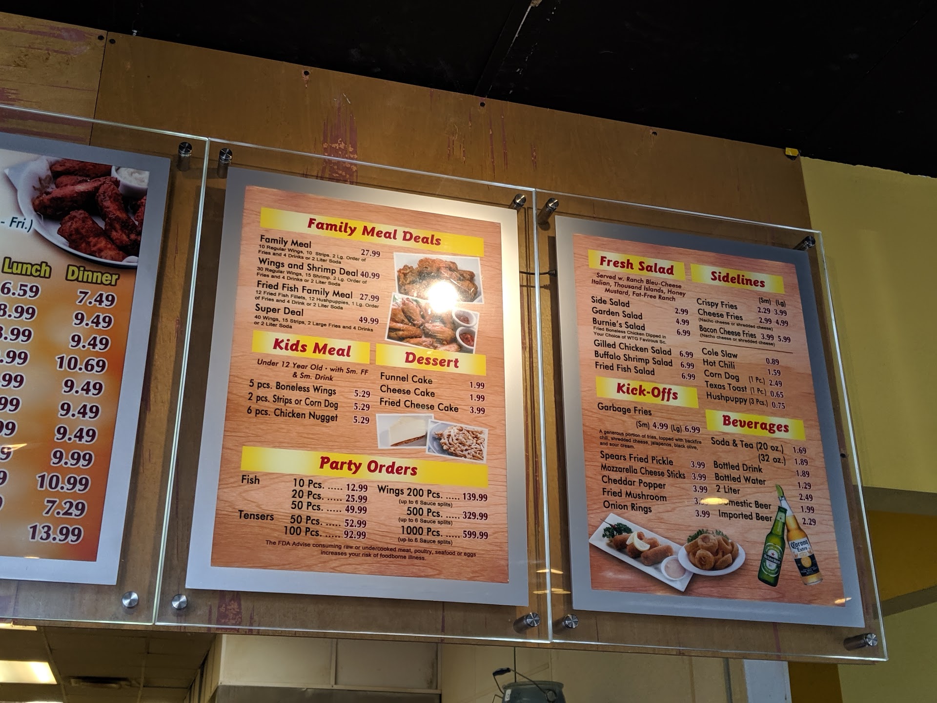 Read moreTried them over a year ago and wasnt pleased. Decided to try them again tonight since I was out and about. The service was terrible. The cashiers didnt greet you or ask if they could help. One was leaning on the counter. The one taking my order ans money acted as if she didnt wa to grab the money and dropped the change I handed her on the register.I ordered 10 pcs of wings and was asked if I wanted ranch or blue cheese. I get my receipt and asked why was I charged $.50 for ranch. The excuse was because the wings are $.55 On Tuesdays. Are they serious?and isnt that something to disclose before charging. Then I get the wings home and they are thrown in the box with no lining and covered in grease with the bottom of the container grease soaked. I won't be back and advise others to spend their money elsewhere. Especially.if a company decided how much to charge for condiments based on how much they charge...