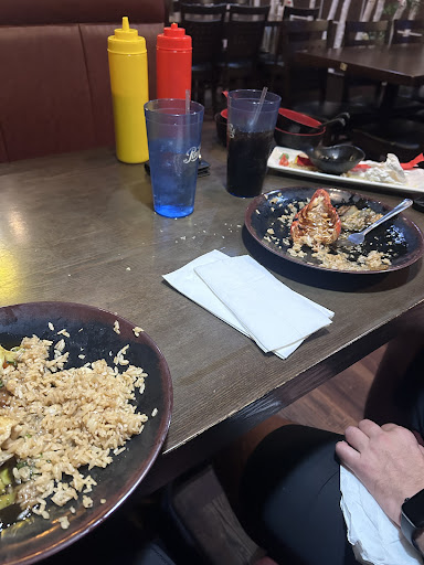 Well, this was an experience to say the least. This is the only Japanese steakhouse/Asian cuisine in about a 45-mile radius. The restaurant is small but quaint and clean, and the menu is extensive. We ordered a sushi roll, hibachi meals, a soda, and waters. The food was served quickly, portions were generous, and everything tasted good.