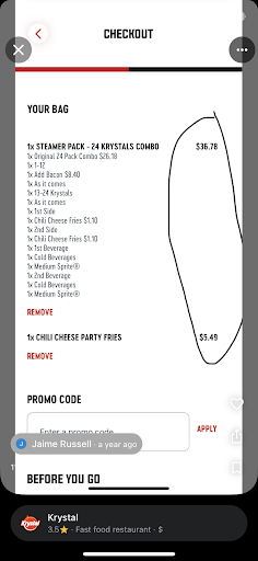 Madisonville Krystal would not recommend serval issues 1 the guy at counter couldn't take order I would have too repeat 4 and 5 times I told him 4 times on everything then he accuse a person that place the order too lying which it was placed 4 times 3 the took all food and slam in boxes the two chillie pups we took back I wish I would have took a pic 1 bun 1 winnie and chillie all over box most Un professionals I've ever seen in my life there was no sense in there attitude and the food they served I want be back and neither will any of my family to make 83 year old man eat chillie pups like those was ridiculous the really should be ashamed of there self for sending that out not too mention the outside of box had melted milk shake all...