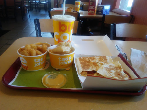 Read moreIt was cinco de mayo so the line was wrapped around the building but it really didnt take a long long time and they did get our order right (minus my ketchup) BUT nothing had a taste to it.. my tots was lukewarm and i put a ton of the mild sauce on them to just boost the taste. I got 2 hard shell taco's .. no sour cream n no lettuce.. so i got a spoonful of meat and 1/2 cup of cheese in a really crispy shell.. again i put a ton of mild sauce on it to give it some taste.. we parked in the sureway lot to eat and the line just kept coming so i get it and it was pretty full inside to but i was disappointed cuz we left el braceros and chose taco johns over taco bell (hands down my families favorite .. gross!) and i really talked up the food.. so yeah... i have to say i feel really fair...
