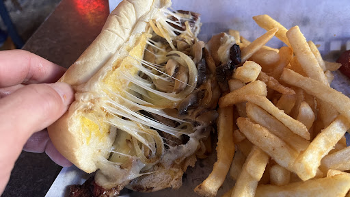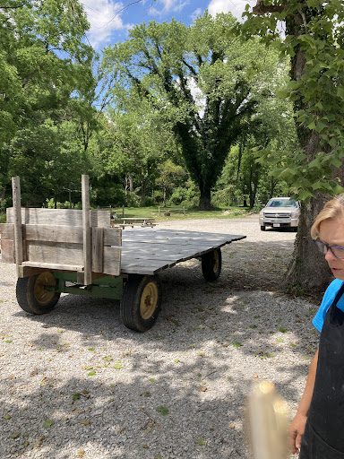 We waited out by the creek...for 45 minutes after lunch rush for two burgers with cheese and canned mushrooms and freezer fries. We were buzzed to come get our food finally. I go in and she hands me the food and i have to set the plates down on a table to open the door and go out. Luckily another patron offered to close the door because i wasnt going too. The significance of this is when we came in to order, it was far busier and the waitress offered to " get the door" for the person she was waiting on when we entered. Yet she was less busy when i picked up my food and didnt even consider opening the door for me forcing me to try to not spill my food and open the door both.