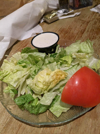My wife had an 8 oz. prime rib, a baked potato, and a side salad. I decided to have their full rack of ribs and also had a potato with a salad. Her prime rib was cooked to medium (as she requested) and it was excellent! It was tender and was served with horse radish. My ribs were tangy, tender, and even though I was given a knife, I easily cut them with my fork as they fell off the bone. Our salads and baked potatoes were delicious accompanied the meal perfectly!