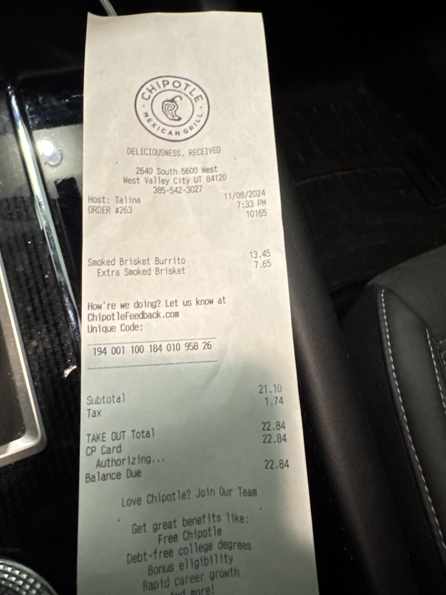 Read moreToday I went into chipotle and had a brand new $25 gift card. The workers had no clue how to use it. There was three different workers there and I was told three different times that my gift card had a zero balance when it was brand new. I left and went to the west valley location and my gift card worked right away.