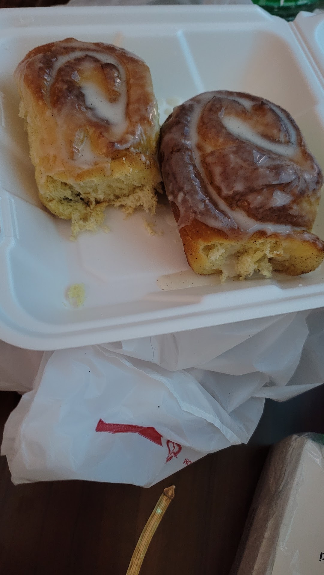 We were staying at the hotel across the street, in town from Southern Louisiana for business. We are big on reviews and decided to look over reviews on Google rather than our usual, we were optimistic about trying this restaurant. Definitely disappointed. The young lady behind the counter seemed so friendly to the lady in front of us, so we were quite surprised that her pleasant disposition very visibly disappeared when we stepped forward. I have my speculations on what she may have not liked just looking at us, but I'll leave that out of this review. Our food was fresh, I can say that, but that's about it. The fried catfish still had the fishy 'belly', since there was apparently no seasoning in the fry that was the only thing you could taste; and I actually have a low salt threshold compared to many southerners. The shrimp also had zero flavor. My husband was glad he asked that his grilled catfish be made spicy because, while it looked great, the flavor it had was barely there. He did say the greens were fine, would probably have asked for rice if there was a next time. The next evening we decided to just stop in and try some of the cinnamon rolls we read about in a few reviews, final disappointment and the trigger to this review. Ours definitely didn't look like the reviews we saw and smelled like they were warmed straight out of a package. Sadly they also tasted as processed as they smelled. Hopefully others received something other than we did. Because of where they are situated they do not have to worry about customers, and it shows in their lack...