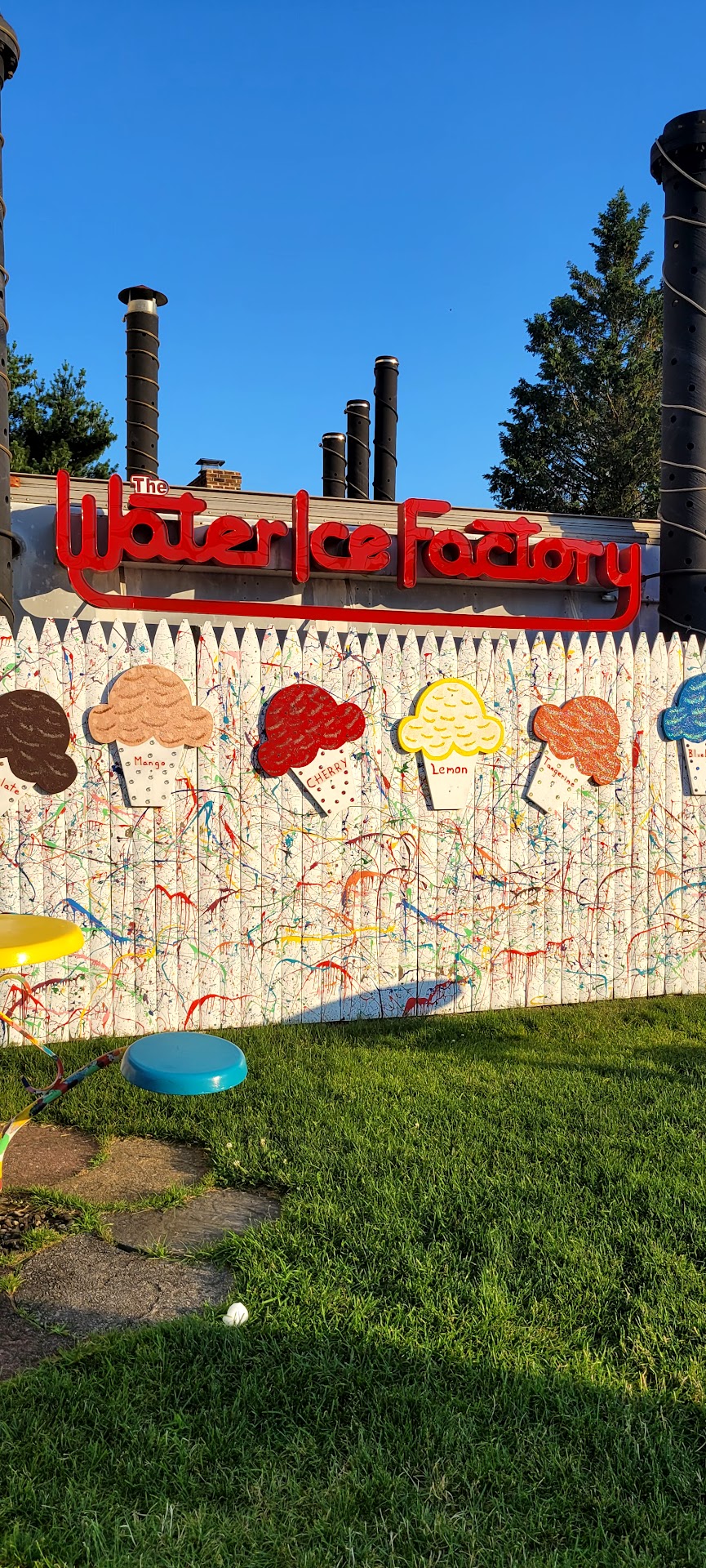 What a wonderful place for you and your kids to have memories no matter what their age is! I have five kids and they all grew up going to order ice factory! And now I have my second child going to be a Grandpa! And I have two great grandkids ready and one on the way so I would say that's a few generations that the motorized factory was always a fun spot that started this family being nice and cool during the summer and then whenever they were hoping what delicious delicious flavors! As a senior I don't remember how many flavors but if you want to flavor I'm sure they've got it! And as I'm having a senior man I'm sorry the owner I know like I should know my own name but invades me! Please forgive me! Lol! But don't ever stop because you are a staple in this area! What will we do without the water ice factory!...