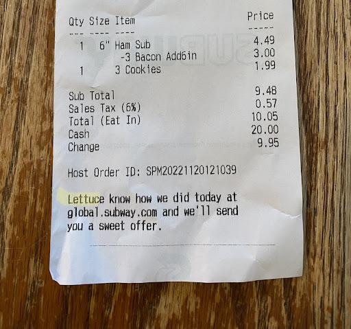 Update: Subway can’t even spell “Let Us” they spell it as “Lettuce” the food… this company is illiterate along with the...