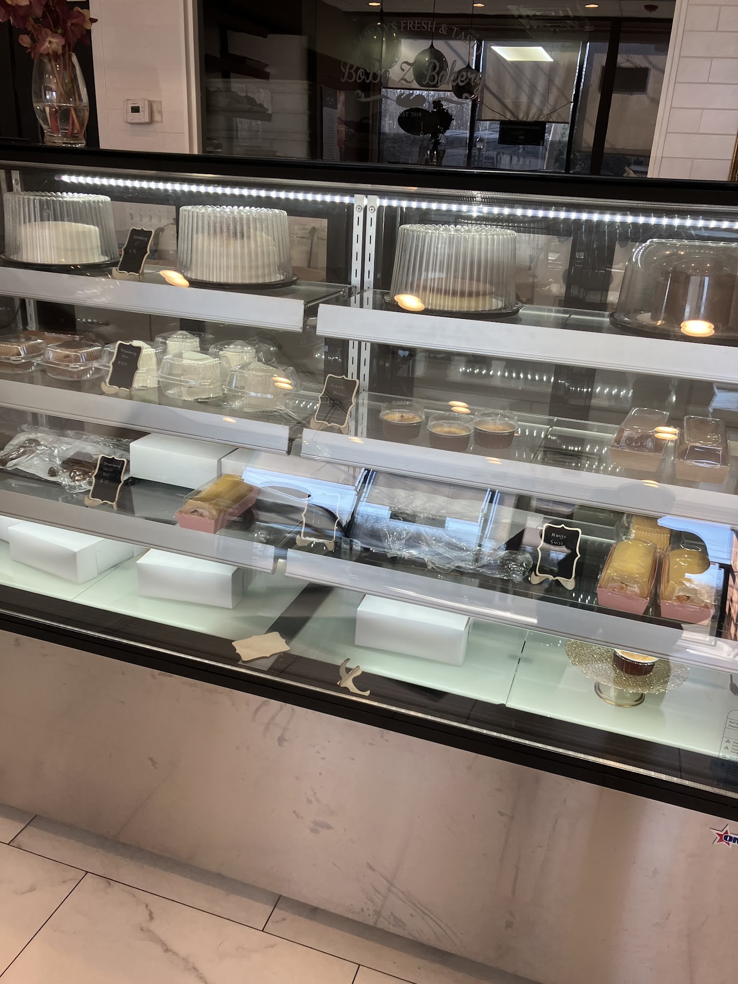 Read moreBeautiful high quality bakery with lovely kind owner. Went in Sunday end of day, so wasn't expecting there to be much and was totally ok getting day old stuff considering the time. The owner was so nice and let me know which items were too old and I shouldn't buy, that never happens when I go to most bakeries. She really cares about quality of her products, you can feel a genuine love for what she does. She recommended the mango cake that she just finished. Which was seriously the best cake I have ever had. She said she just sourced really amazing organic mangos, and you can taste it. The vanilla bean in the frosting was a perfect balance to the mangos. It reminds me of this expensive mango cake I got in Japan made from their luxury fruit stand in Osaka. Normally I'm a chocolate person, and her chocolate cake was like a chocolate cloud, super tasty, close second to the mango cake. Everything was so light and fluffy and not too sweet. It was too easy to eat everything I bought in one sitting. The cream puffs were also impressive. She recommended I freeze for 30 mins then room temp 5 mins, since these were also just finsihed. The shell and cookie top was.perfectly crunchy and thin and the filling was like really good vanilla ice cream. Also got some brioche with extra butter and dinner rolls. Loved the soft spongey texture and buttery rich tastes, reminds me of what we made in French pastry school. Definitely want to go back earlier when everything is...