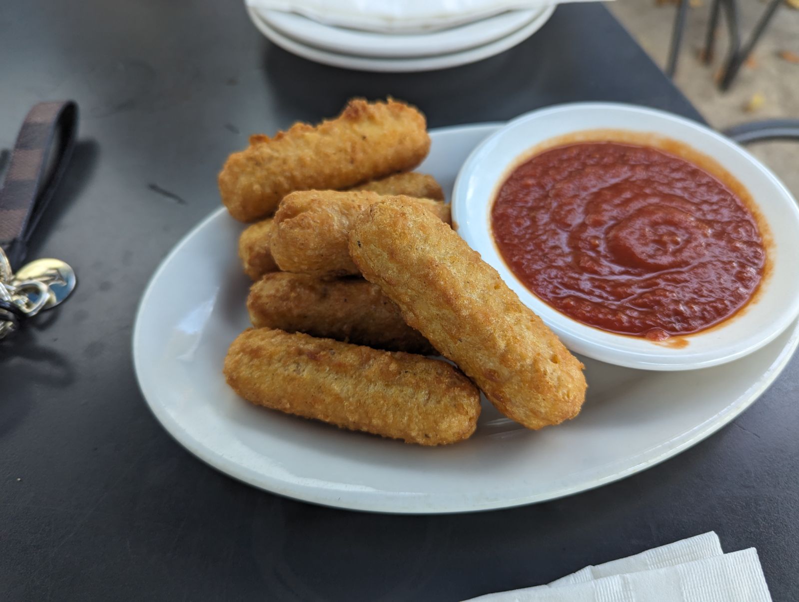 We decided to split an app and ultimately settled on the mozzy sticks. After we'd each taken a bite, we looked up at each other in mild confusion. "It's not...BAD," I said. The Millennial Chum frowned. "No. Not BAD. Weird." She was right. We're pretty sure the issue was the texture - these were not breaded sticks; rather, they appear to have been deep-fried, so there wasn't any bend to them. We were grateful for the accompanying marinara sauce, because the sticks themselves were pretty bland, something I think that could have been easily rectified if they'd been prepared a different way.