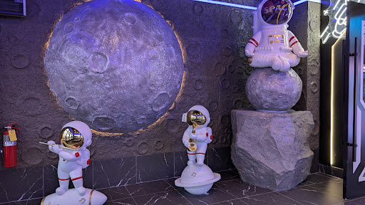 We came here a few weeks ago and I meant to review sooner, but a bunch of crazy stuff happened and life got in the way. In any case, this restaurant had a very cool atmosphere, really leaning into the "Galaxy" side of its name. Whimsical astronaut sculptures and space-themed decor permeated throughout; the hallway leading to the restrooms was especially a trip, with textured, rocky walls.