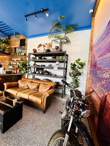 Thanks to Yelp, I found a new gem! What a fun new business that’s motorcycle themed! I love that the inside is filled with motorcycle themed merchandise, and they have a wide variety of beverages (coffee, boba tea, hot chocolate, CBD oil, etc) and pastries. I tried one of their specials today - the lavender mocha, and it’s one of the drinks that you can get iced which I love. They also asked me what type of milk I would like - I went with almond. As for pastries, I had a chocolate chip muffin - perfect for my taste buds (not too sweet and not too plain). There were chocolate chips evenly spread throughout. The staff here is very friendly, efficient and made great recommendations. They have free WiFi as well as plenty of chairs and tables for those who want to lounge around, study, or enjoy their beverage and pastry. There’s also plenty of free parking on premise that they own. I’d totally come back when I’m in the area next and would recommend this place to anyone looking for coffee, tea, and if you’re a rider, you most definitely need to come...