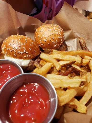 The curds app was ok. A lot of oozed, empty curd shells, though. When our food arrived, they forgot my husband's tacos. Meanwhile, I noticed my burger was sitting in a puddle of some liquid (grease or juices) to the point I couldn't pick it up for the soaking bottom bun. So I cut it in two, and I'm glad I did. My medium burger wasn't even quite mid-rare. It was bright red all the way through. After setting the dish aside for about five minutes and awaiting anyone to walk by, we grabbed the same guy and pointed out that the burger was underdone. He then came back and asked what level of doneness I wanted and I said medium. He then said that that was their medium, that their mid-well was pink throughout, and well had some pink in the middle. I then asked for mid-well by that standard. When he returned, my burger was a real mid-well - a small stripe of pink in the middle.