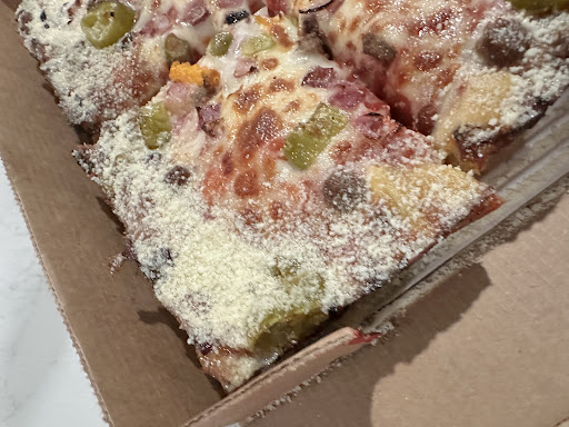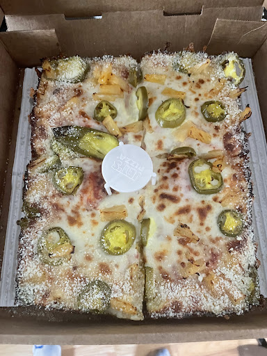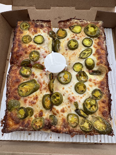 After roughly 20 more minutes, my pizza was finally readyânearly 53 minutes after I had placed the order. Unfortunately, it wasnât well-done as requested, and the crust was almost packed without seasoning. When I pointed this out, they offered to cook it further, but I couldnât wait any longer since I had guests at home eagerly awaiting dinner. To top it off, the pizza lacked the signature crunch that Detroit-style pizzas, like Jetâs, are known for. The crust was also overloaded with romano, which was off-putting.