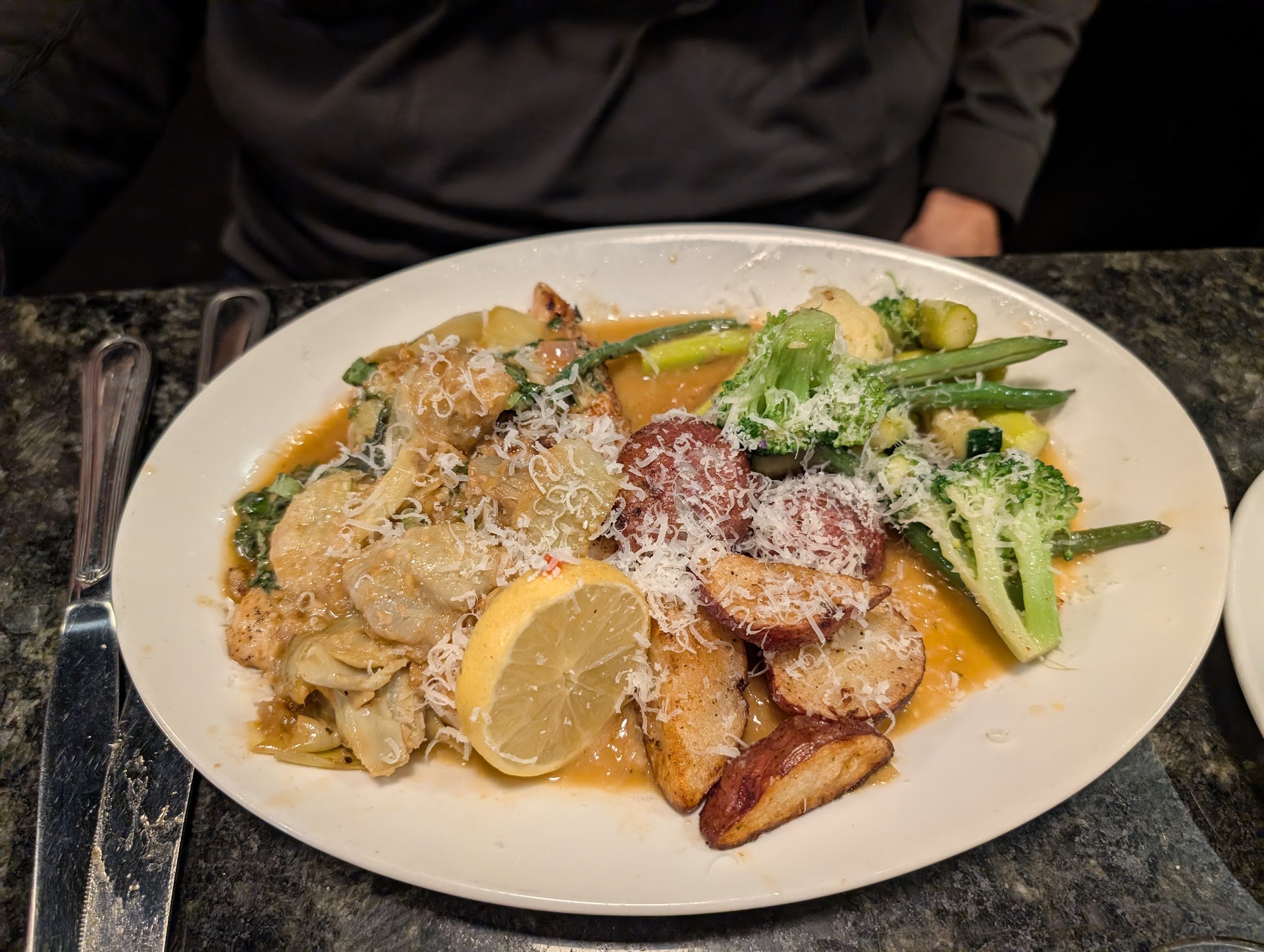 Read moreAbsolutely incredible solo dinner experience. I had the cream of broccoli soup to start, which was unique with hints of the goat cheese and basil. The bread was hot and ready, wine pairings were excellent. Now the eggplant parmesan I've been meaning to try and am so happy I finally did it was perfection. The sauce was so simple yet amazing, the way Nonna makes! I had to grab a jar to take home.