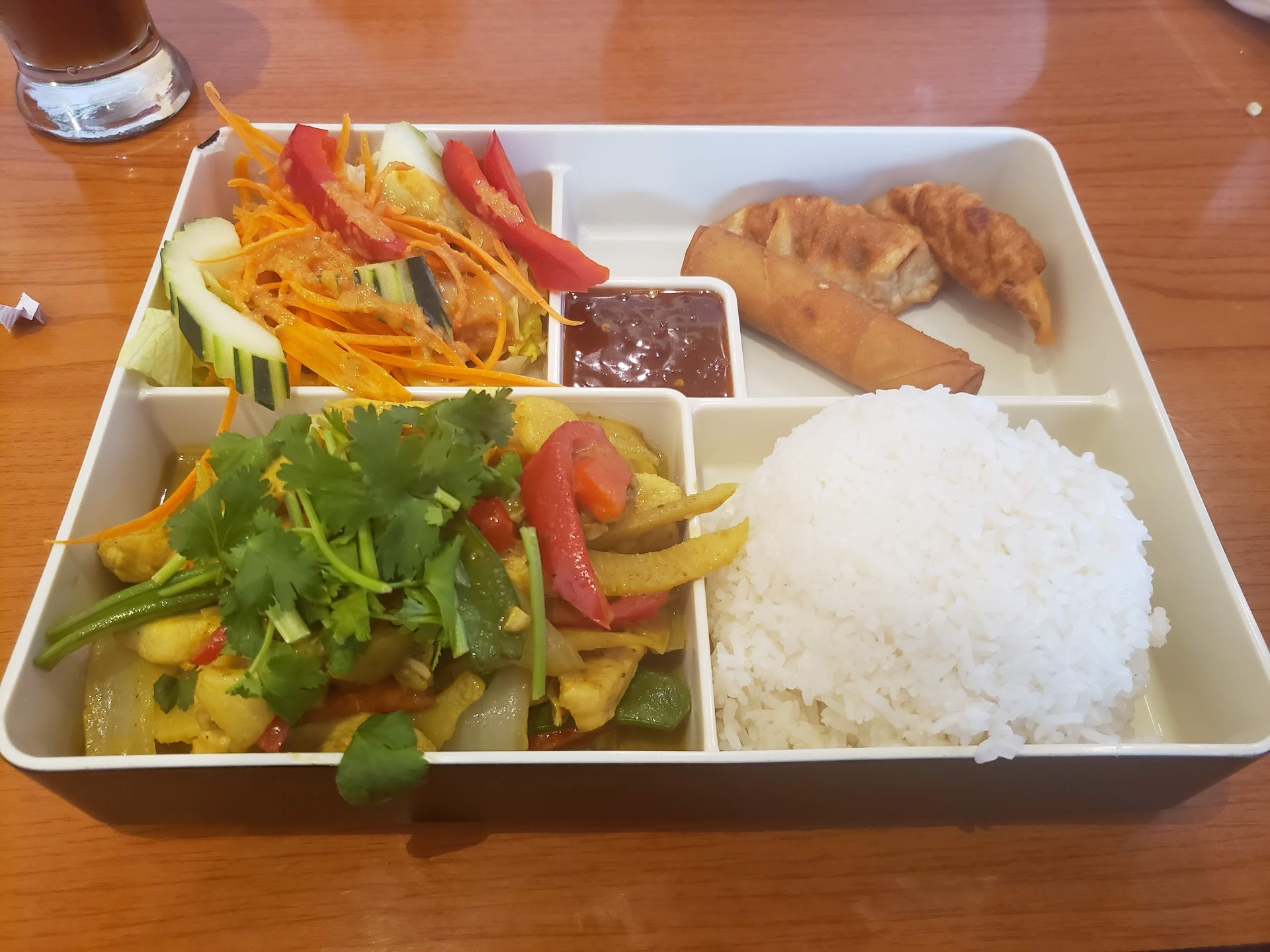 I had to stand up and walk to the only staff member that was still there, handling all the tables, because everyone either disappeared or decided to take their lunch our before serving us. I told him no one had come to our table for a long while and that we were more than ready to order. When we did, he told us our food could take a bit longer because they had a lot of stir fry orders at the time. We just thought it was funny that was an issue because we could have ordered almost half an hour before had a staff member bothered to check on us.