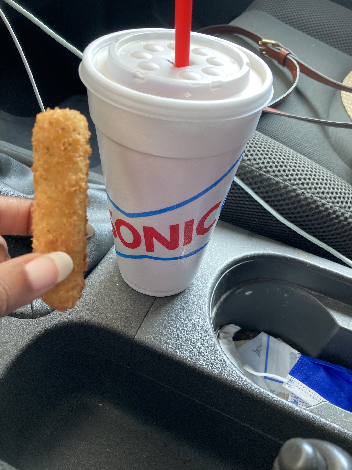 ย ย ย Read moreThis was pretty bad. I had ordered through the app. When I checked in and it said my order was headed out the door it was another 5 minutes. The server who was pleasant started to hand me my order and when I double checked with her she had no idea what the order was. She had forgotten my Rt 44 drink and had to go back for it. The chicken breading was stale and I almost broke my fork trying to stab one. The tots had a weird flavor and no salt. I couldn't finish my meal because of the taste. I had a poor experience from this location before (they were cleaning the ice cream machine after the store was open so none for me at that time) but thought another chance was in order. Well, I just have to wait untill I drive past another Sonic further down the road if I want something from...