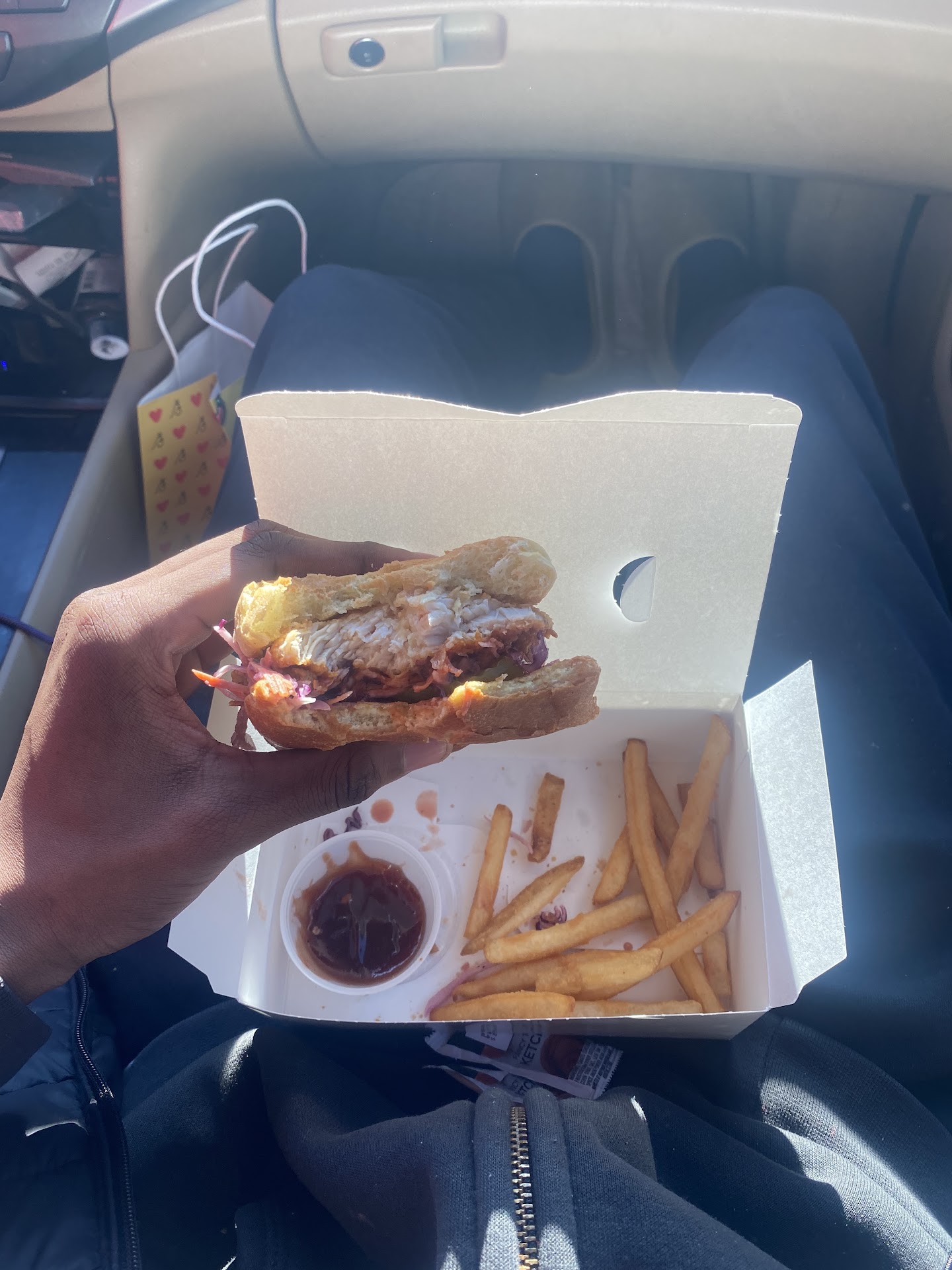 My wife and I tried them this weekend because we figured that the couple of soft launches they had prior would be a mess, since they probably needed to work out the kinks. That said, the front-of-house staff is some of the worst I’ve ever seen. We ordered the deluxe chicken sandwich (they had a buy one get one deal for their grand opening), and while the chicken wasn’t crispy at all, the taste of the sandwich was actually good (moist chicken, flavorful coleslaw, nice bun, etc). That’s why it gets 2 stars. However, I witnessed a gentleman come in after us and order the two-piece chicken meal and another couple after him order an 8-piece, and instead of fulfilling their orders, they made them wait in the queue, even though the chicken for those orders was in the warming case ready to go. Also, we waited for over 20 minutes for our order which included the two sandwiches and two “smoothies,” which they claim on the menu are made with ice cream but are not. After we saw them make the drinks with a milk that is kept out on a counter (read: not refrigerated), and use a TON of ice instead of using ice cream, we questioned them on why there was no ice cream. We were told that it is made with “vanilla milk,” which is “like ice cream.” You could only imagine what the consistency of that was - yuck! One sip and it was in the trash! No apology from them either or offer for refund - they said it is what it is - shameful. Another family was there waiting for their order for over 25 minutes and had to keep asking for the status, even though they were visibly distraught - of course no apology. The staff was standing around most of the time waiting for the back of house to bring things out, instead of fulfilling the orders that were available like chicken piece meals and French fries. And when the orders came out, everyone was crowding the counter to see if it was theirs because the gentleman calling out the orders was so quiet and couldn’t answer simple questions. If the chicken sandwich were the best around we’d probably try it again, but with front of house staff that bad I won’t go back until they get some new help or at least someone that vaguely...