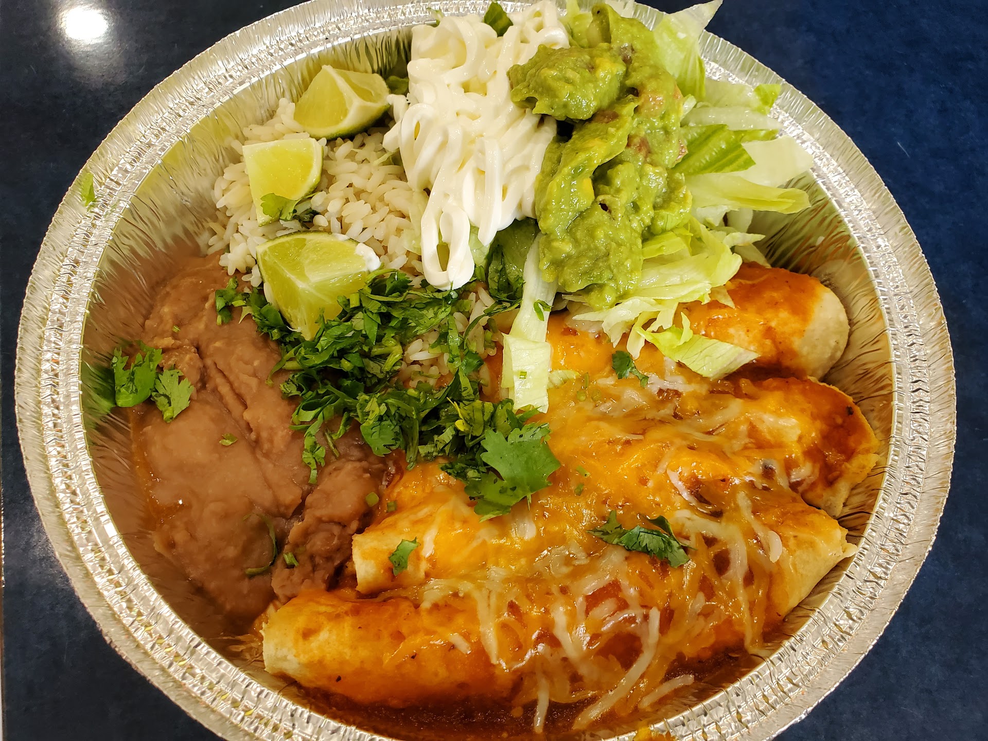 I had the enchiladas with Chipotle chicken Absolutely delicious! Flavors from all the different flavors exploded into wonderfulness. This dish came with cilantro lime rice, refried beans, lettuce, etc. See the pictures. You can choose which rice/beans you would like as a topping. Rating is an 11/10.