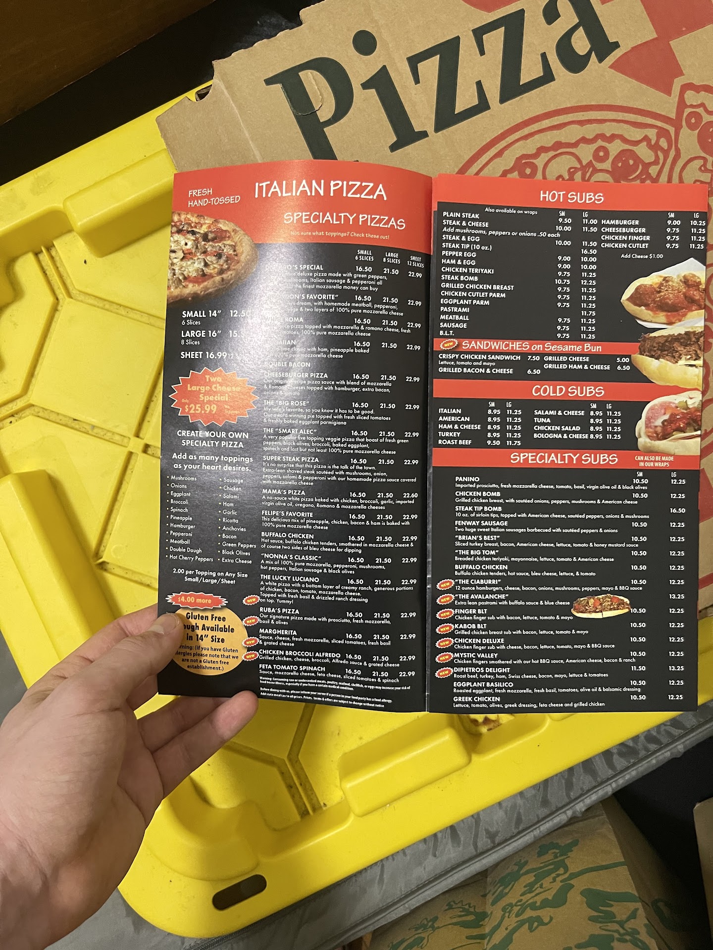 Another failed experiment by giving depietroās a shot because my wife likes the pizza there (I honestly donāt see how when vinnieās And Pisa much better product and service). Ordered for delivery at 459pm pizza wings and sticks. They said 35-45 min for delivery. 6pm comes still not here so we called, women said well the driver is about to leave and sorry for the delay. I live 7 min driving from the place, 625pm rolls around and still not here so I called again women says they should be there any minute, I said well itās been an hour and a half since I ordered and 45 min past due the original 45 min eta of my order. My 4 year old is screaming that heās hungry. No remorse she said itāll be a couple more minutes we are busy ..: jeez an hour and a half later you tell me youāre busy I could have gone to every pizza place in Malden had a slice at each and still be back before the driver made the delivery. Needless to say the delivery driver showed (hefty rude guy chewing gum like a cow) doesnāt say hi doesnāt say sorry for the delay hands me the pizza and the bag. I told him Iām gonna run in for a sec to check the food not surprising to find out the pizza and sticks are cold and the wings are luke warm. I open the door to talk to the delivery guy and heās nowhere to be found. He literally dropped the food off and jetted out of here. I called back and spoke to 2 different women and then she was like omg Iām sorry to hear that, I asked for a refund and told them to have mr hefty come back and bring the food back with him. They told me I have to call Robert (owner) back at 10am tomorrow. I said you canāt issue a refund right now she said no he can only do it. After this ordeal now my wife sees what Iām talking about and will not be ordering Dipietros again. I canāt believe in a day and age where service matters This place has...