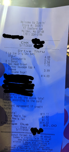 Ā Ā Ā Read moreWorst Dunkin I've ever been to in my life. Rudest nastiest manager and staff. I've been here several times over the past few years mostly because I have to and every time it's something. They consistently get orders wrong then when you politely ask to correct a mistake the manager immediately says "you didn't order that" and starts blaming you and calling you names. It feels like the customer service twilight zone. They do the opposite of every good customer service best practice. Normally I'm too busy to deal with them and drive away. But I've finally had it. They now have a practice of immediately throwing away and not giving customers receipts so they can later blame customers when there are missing items. Stay far away. I will walk the extra mile to go to a...