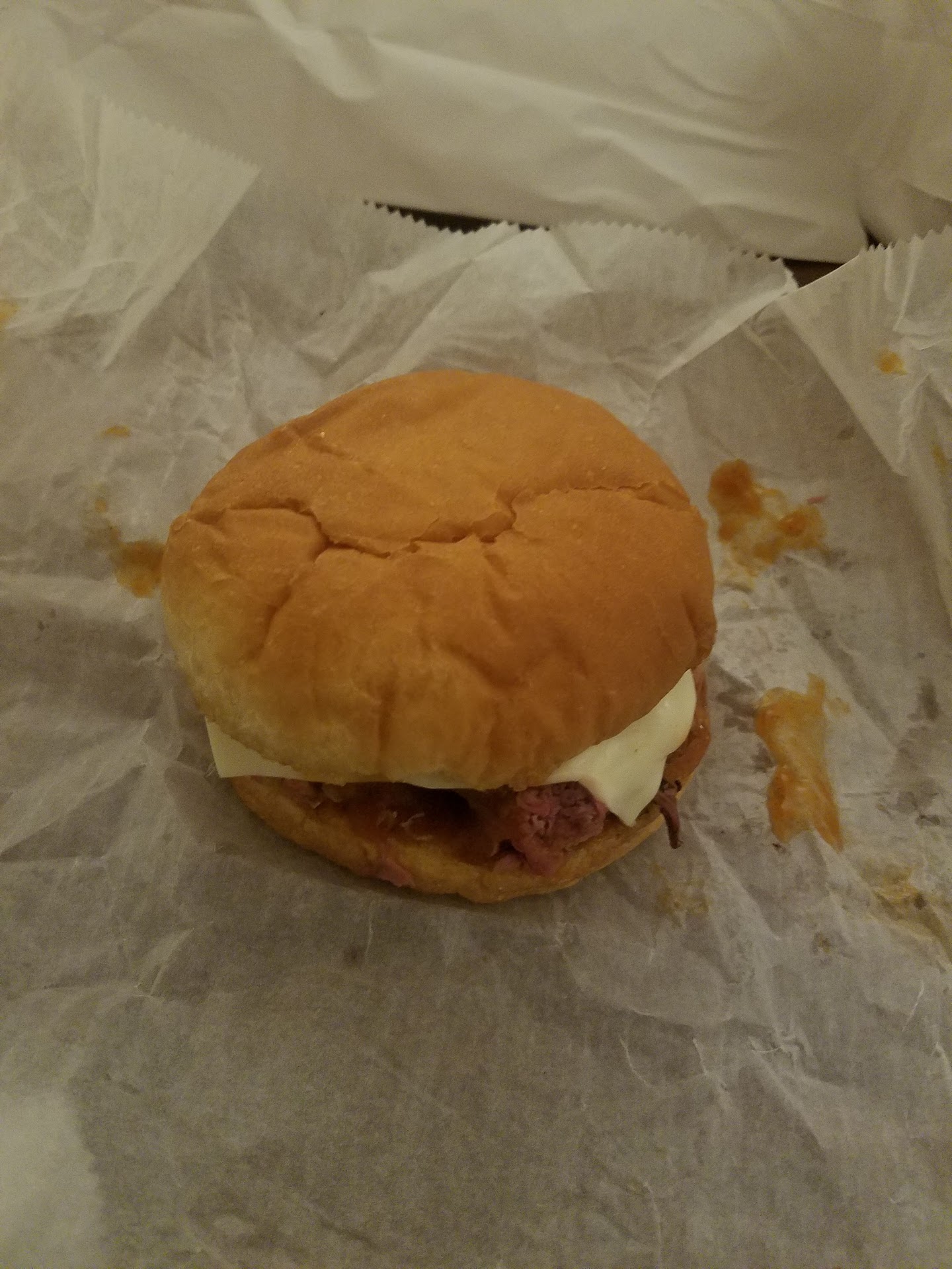 I ordered the "Big" sized roast beef sandwich with the "3 Way" option, which included their special BBQ sauce, mayo, and choice of cheese (I chose American cheese). I also added lettuce and tomatoes, which may not be traditional, but I wanted some veggies.