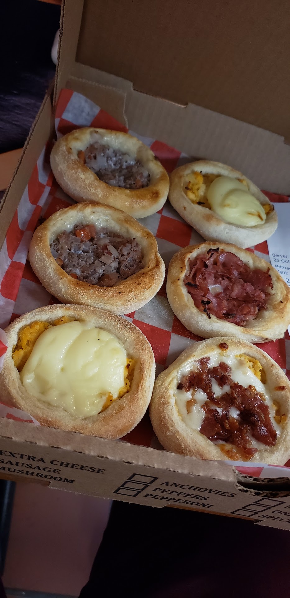 We order half bacon half calabresa with stuffed edges.