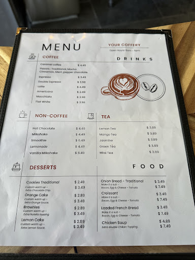 Read moreMy boyfriend and I live right down the street from Your Coffery and have been waiting for it to open! We finally tried it this morning and are so excited to have a delicious coffee shop just a minutes walk away. The specialty caramel coffee with cinnamon topping has such a unique flavor profile that keeps you going back for more and the lemon cake with drizzle was moist and the perfect amount of sweetness. Raquel was also so kind and welcoming. I hope this place takes off, we...