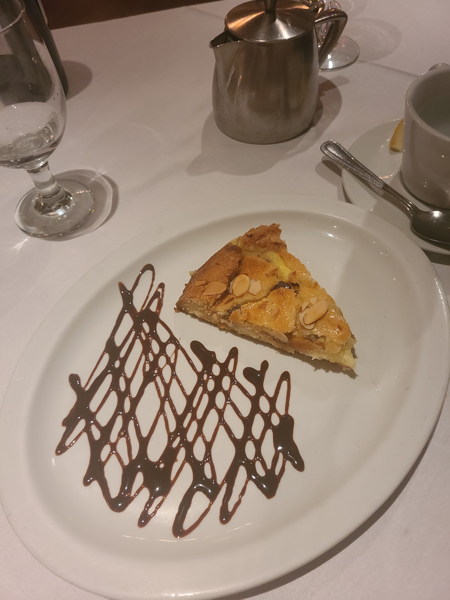 Due to the high price and some bad reviews we decided to skip appetizers and just go straight to entrees. Each item we ordered was perfect, not too large portion, flavors were perfectly balanced and we were very happy with them. There were several freshly baked torte dessert options, we tried two which were both nice.