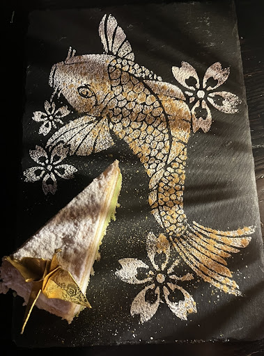 Shrimp dumplings - yum Yakisoba noodles with chicken - tasty but small portion Miso black cod lettuce wraps - sooo good Albacore crispy onion - he loved it Salmon sashimi - he loved it Whispering veil - refreshing mocktail Golden koi ricotta & pistachio - light & yummy Spicy albacore taco - he loved it Salmon taco - he loved it Toro taco - he liked it