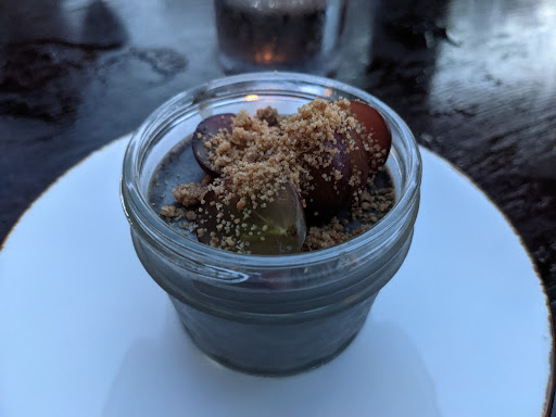 My wife and I were seated promptly and our server, Kim, was friendly enough. She described the wine special - a white Pinot Noir - as "something like flat Champagne." We came hungry, so I mentioned as we ordered drinks that there was an appetizer I'd like to put in - Kim replied "Oh, we take the whole order at once here" and walked away. Having worked in hospitality I can understand that - some point of sale systems require that you have the whole order before putting any part of it in (or some places are just very particular about timing their dishes correctly) so it's not unheard of to want that. I do wish it'd been phrased a little differently.