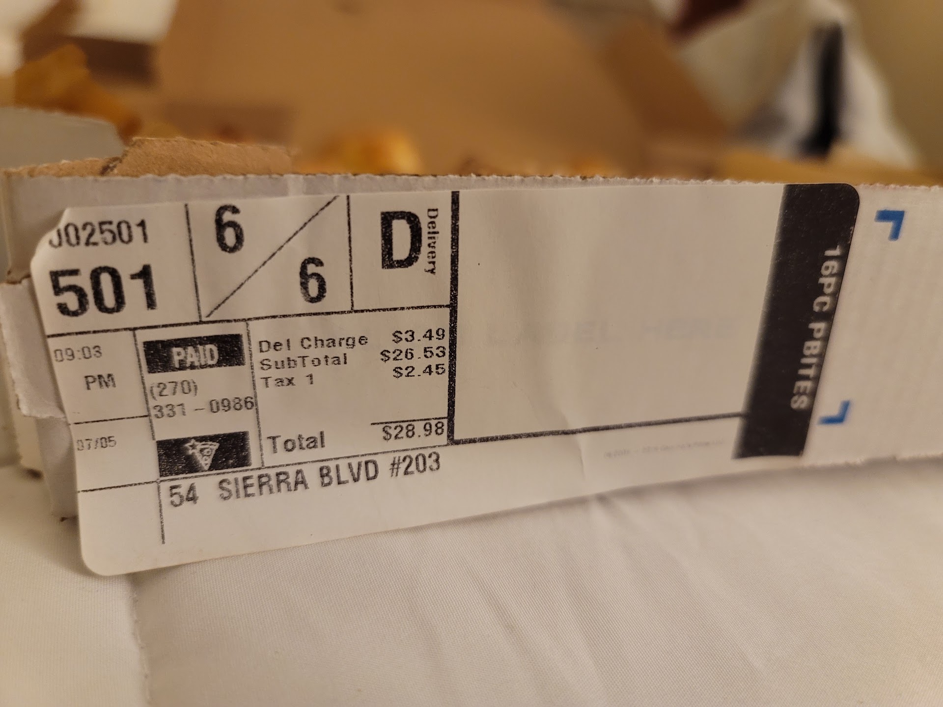 I wish I could give no stars. I ordered from domino's before from this very restaurant and it was excellent. However this time I ordered was a total let down. I ordered on a coupon two 2 topping medium pizzas and a16 parm bites,and 3 20oz diet cokes I got 2 burnt pizzas 16 parmesan bites and a 2 liter. I tried to call and it says "mail box full and can't leave a message" then says bye and hangs up. I even looked on the labels and it says thin crust on both pizzas and 3 20 oz diet cokes, I don't understand how you can put a label on a Box and still get it wrong. I have ordered from domino's in many different cities and places and by far this is the worst I have ever seen