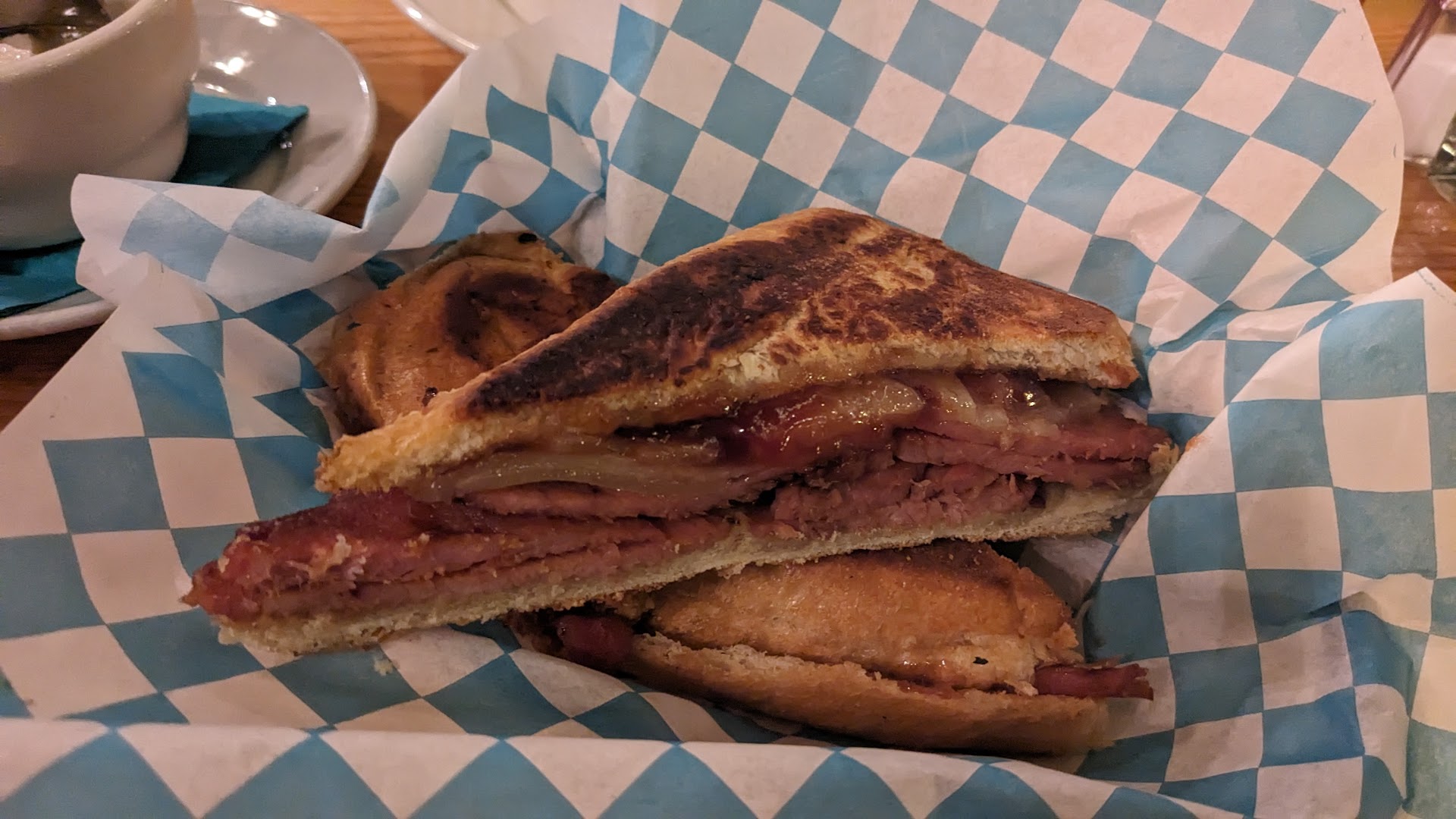 I had the Piñón, which is essentially a Puerto Rican lasagna (instead of lasagna noodles, sweet plantains are used). It came with a side of beans (you can choose red or black) and rice (white or brown). It was a big portion, but it was so good that I cleaned up the whole plate. I'm only 5'0, so that is saying something! I don't even know how she procures plantains in Mammoth, but it shows how much work she puts into making sure her dishes come out right; Cristi doesn't cut corners. I also tried the red wine sangria and it is yummy! For dessert, I split the manchego and guava grilled cheese with my boyfriend.