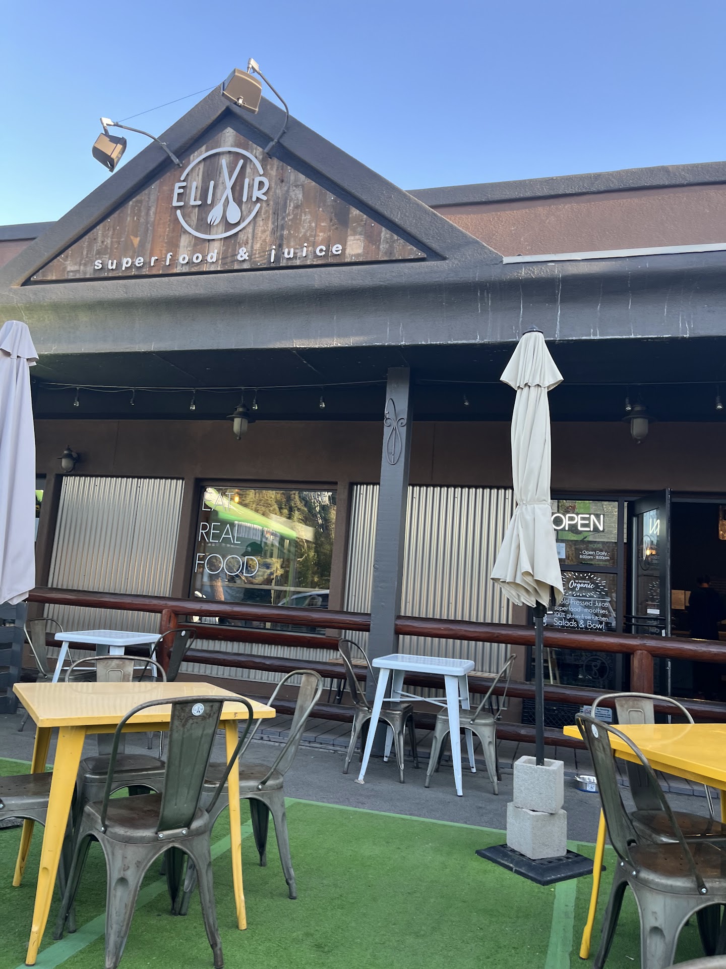 Read moreâWhen you offer less service you get less quality serviceâ is the impression I am having with elixir. I have been coming to elixir during my summer seasons working in the area for over 5 years. I love the food and they hold a market being the only healthy food option in town. Itâs not uncommon to have a less than friendly interaction with a staff who doesnât seem to want to be there but never nothing at all. Since last year I saw them shifting from customer service based to more kiosk and online and today was the first time I went in this season and Iâm hoping I just caught everyone on a âbad dayâ. Literally the coldest service Iâve experienced there. No greeting or acknowledging with only two other customers in the room, when I placed my order on the kiosk I hung out going outside to check on my dog in the car while waiting. I return and tried to give a polite smile to the guy making the bowls who glared back at me!! Crazy, and then I noticed my food on the little side counter by a girl stocking drinks. I made a comment how I didnât know my food was up and how everyone seemed so quiet to which she said sheâs autistic and antisocial. The vibe is so opposite of the purpose of nourishing(expensive) food. If it wasnât the only health food place and the only place in town I eat as a vegan when I come down the hill Iâd not return due to the customer service. Itâs a tourist town yes but itâs also a small community where how you interact with others...