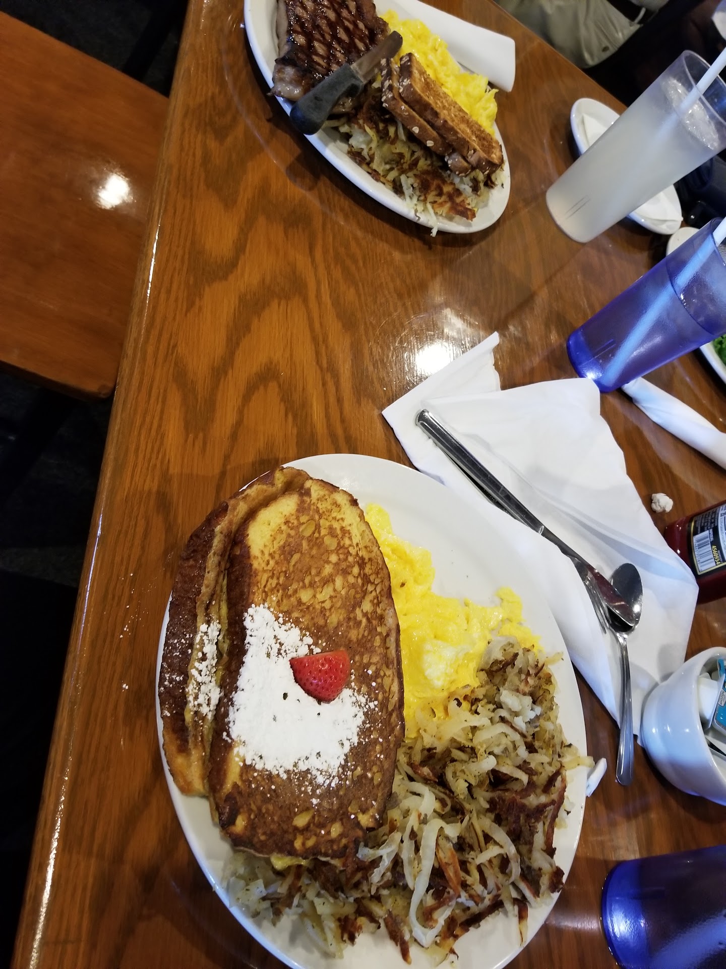 Why is this place so highly rated? I will tell you what I think based on having breakfast here 7/16/2022. Often after a great meal and well executed service I think of writing a great review.. and then life happens, time passes, and the gracious review goes unwritten. As usual writing the review almost slipped me, but this time the I am writing the review. Good tipping is always thank you enough for lots of staff, but I just want to say thank you in writing for the FRESH, DELICIOUS HIGH QUALITY FOOD and attentive service. Seems like you all respect each other and are committed to the goal of excellent service at work. Thank you for you excellence. It was a highlight of my trip. My whole wheat pancake was everything I crave in a pankake. How did they do that with whole wheat? My NY strip was actually served MR, like I ordered :) I do not know if the meat was grassfed, grain finished, or simply well nutured on the farm, but it was great! The color and texture were superb. I was in awe. The OJ was fresh, and the bacon I saw on many other tables looked thick, firm and crispy. My friend ordered a burrito, which I tasted, and was so good, tasted like a slow roasted ratatouille was draped over the top. Mmmm. I could have had that just as a soup! If I ever get a next time here I will have that bacon, and fresh OJ...