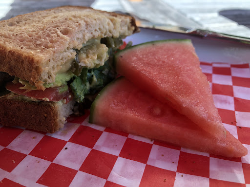 I had a vegan sandwich with veggies, greens , home made hummus and jalapeños. They even had a gluten free bread that was good. But they also have non vegan and gluten filled options as well đ.