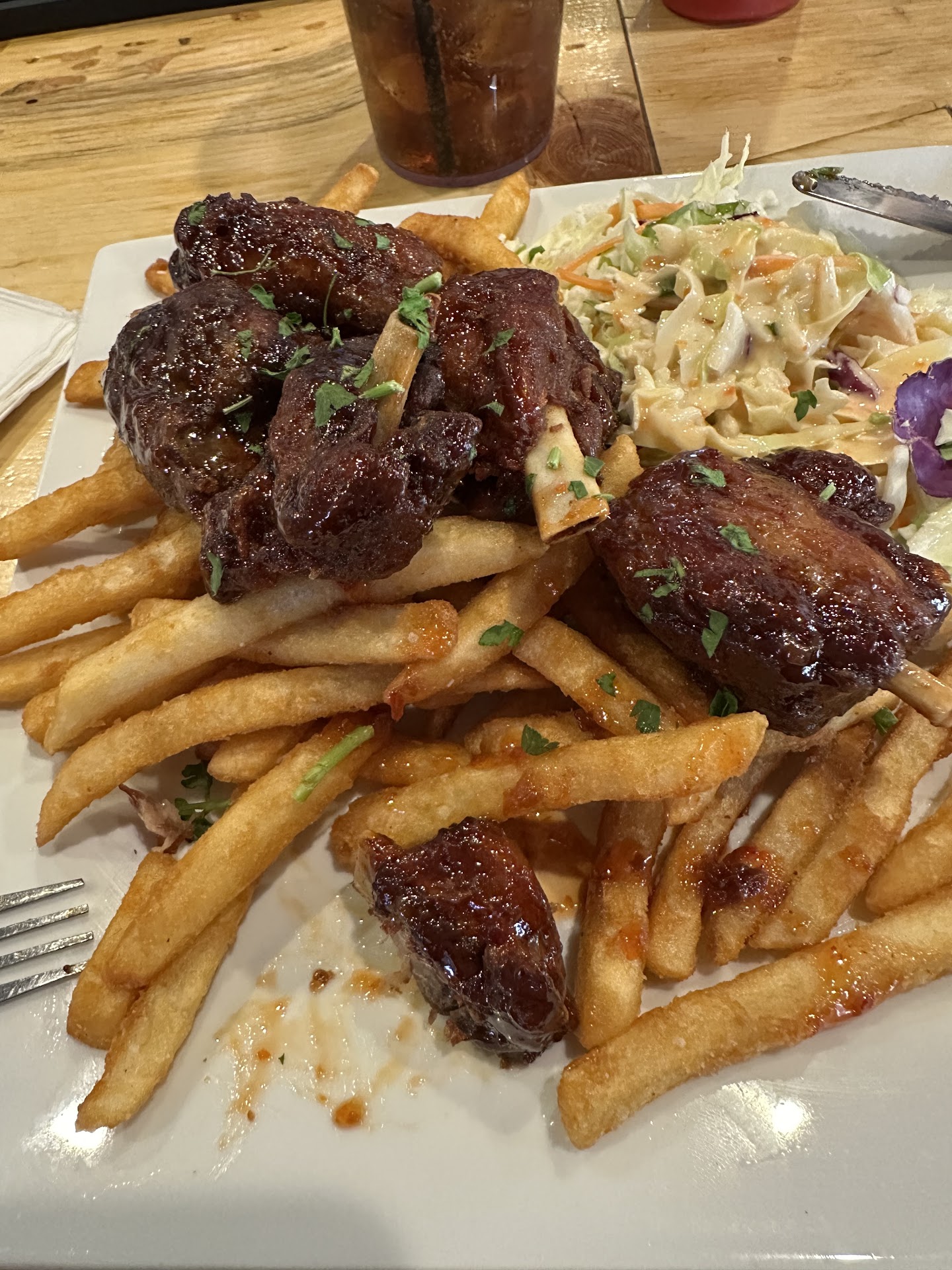 Food: Everything you want from a bar/restaurant menu. Pub Grub, sandwiches, burgers, salads, a few entrees and even apple-pie-a-la-mode! Then menu isnt cluttered, and something for everyone without resort town prices. (where the locals go). Oh. ask/look for off menu specials depending on what the butcher had.