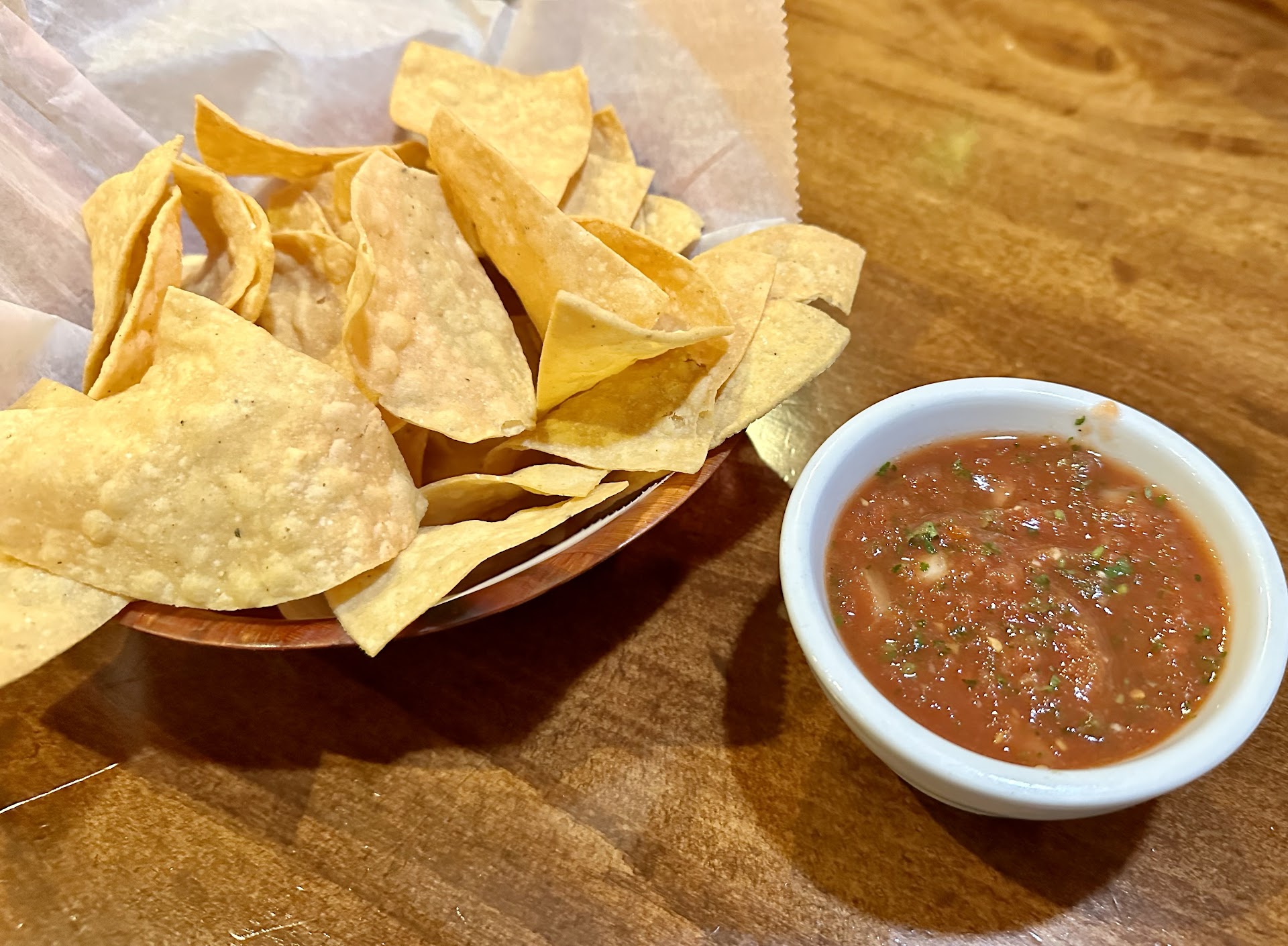 The salsa with the chips was excellent, and a nice medium heat. The chips was literally the only thing I would improve, and that is a very minor improvement to make, they needed more salt, that’s it. Just a touch more salt.